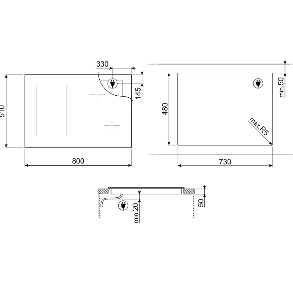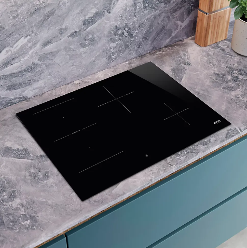 Plaque de cuisson induction 4 foyers Smeg coloris noir l. 80 x P. 51 x H. 5 cm