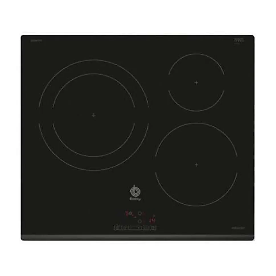 Balay – Induction 3 foyers – Table en verre noire Cette plaque de cuisson Balay. de couleur noire et dotee de 3 foyers a induction. est un equipement de cuisine pratique et moderne. Avec une puissance de 4600 watts. ce modele offre une cuisson rapide et efficace pour vous permettre de preparer vos plats favoris en un rien de temps. Grace a son systeme de chauffage electrique. la chaleur est repartie de maniere homogene pour une cuisson parfaitement maitrisee. Son design elegant en table en verre sintegre parfaitement dans toutes les cuisines. et son emplacement de commande frontale facilite son utilisation au quotidien. De plus. elle est equipee dun systeme de commande sensitive et dune securite enfant pour une tranquillite desprit optimale. Avec ses dimensions de 59.2 x 52.2 x 5.1 cm. cette plaque de cuisson Balay est ideale pour equiper votre cuisine et vous accompagner dans toutes vos preparations culinaires. – Marque Balay – Nombre de foyers 3 (induction) – Type denergie Induction – Puissance 4600 watt – Nature de la surface Table en verre – Emplacement de commande Frontale – Type de commande Sensitive – Dimensions dencastrement 59.2 x 52.2 x 5.1 cm – Poids 11 kg – Systeme de chauffage Electrique