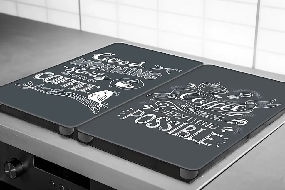 Plaque de protection verre trempé décor « Coffee », 2 pièces