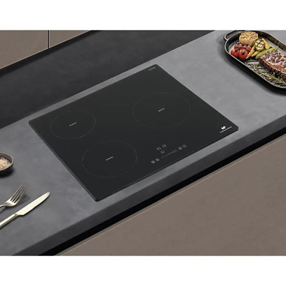 Table de cuisson CONTINENTAL EDISON 3 foyers – 62000W – 3 boosters – 3 timers – noir 1 foyers 16cm – 1500W 1 foyer 18 cm – 2100W 1 foyers 21 cm – 2600W 9 niveau de puissance Fonction Boost Minuterie par foyers jusqu’a 99 minutes