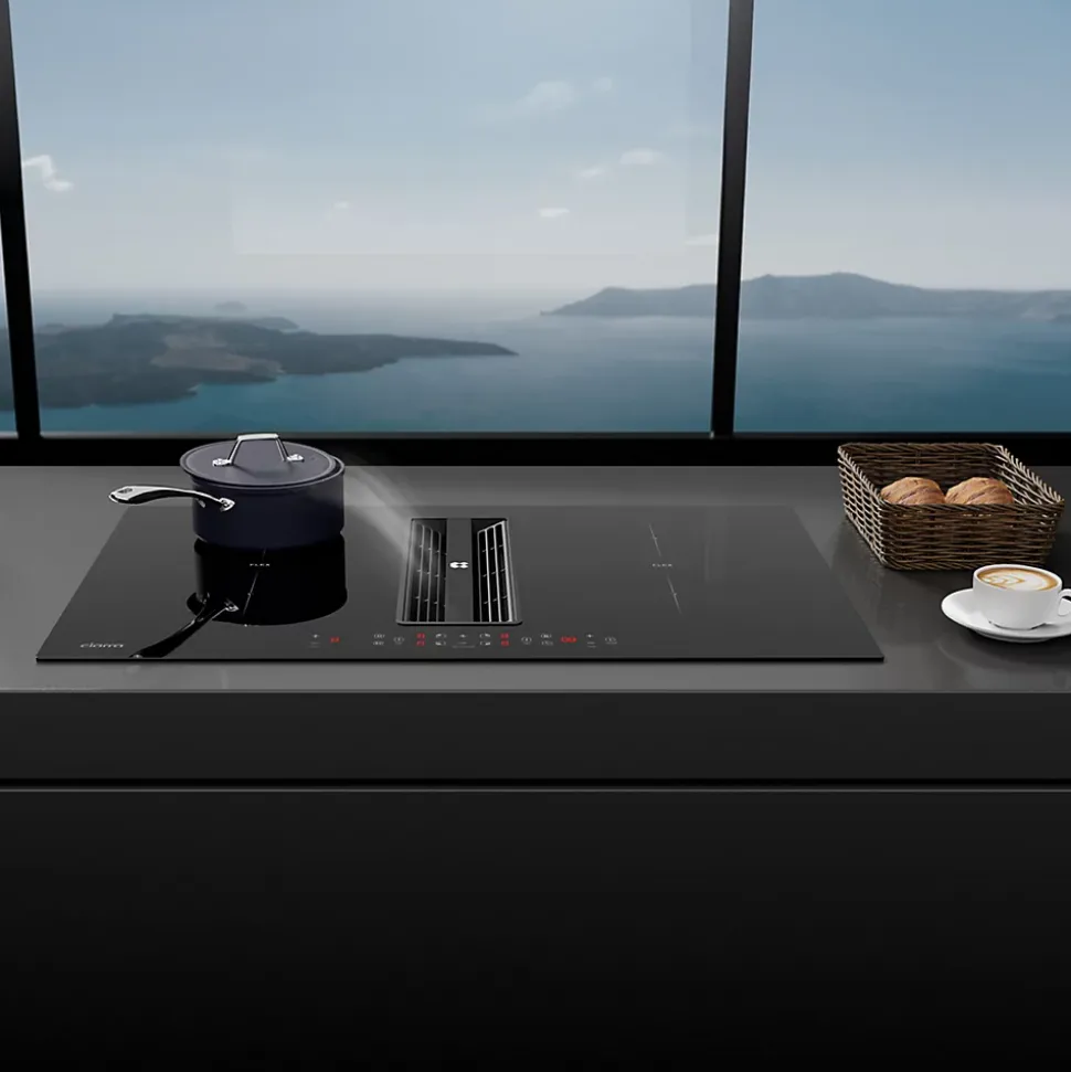 Plaque Induction Aspirante 83cm Plaque avec Hotte intégrée 500m3/h Filtre à Plasma A+ Booster 2 Flexizones CIARRA