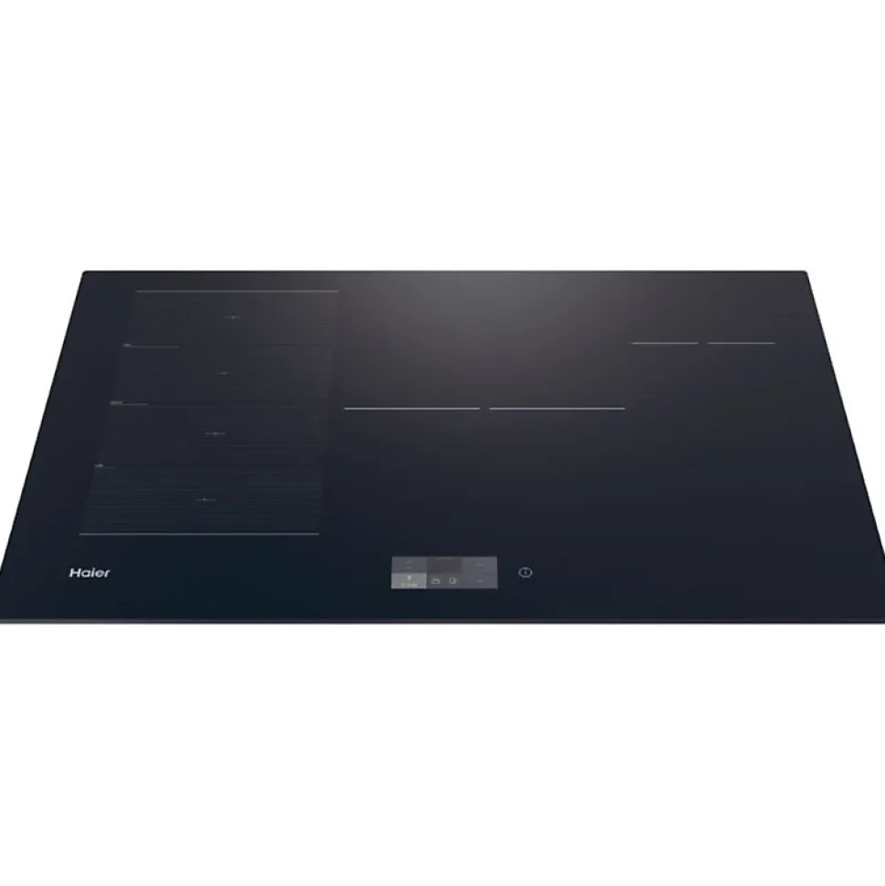 Plaque induction Haier HAMTSJ86TFTCF de 80 cm encastrable avec 4 foyers induction dont 1 multizone, puissance totale de 7400 W. Commandes tactiles via écran TFT, nombreuses fonctions de sécurité, connexion Wi-Fi via application hOn pour recettes et contrôle à distance. Design élégant en verre noir avec surface facile à nettoyer.