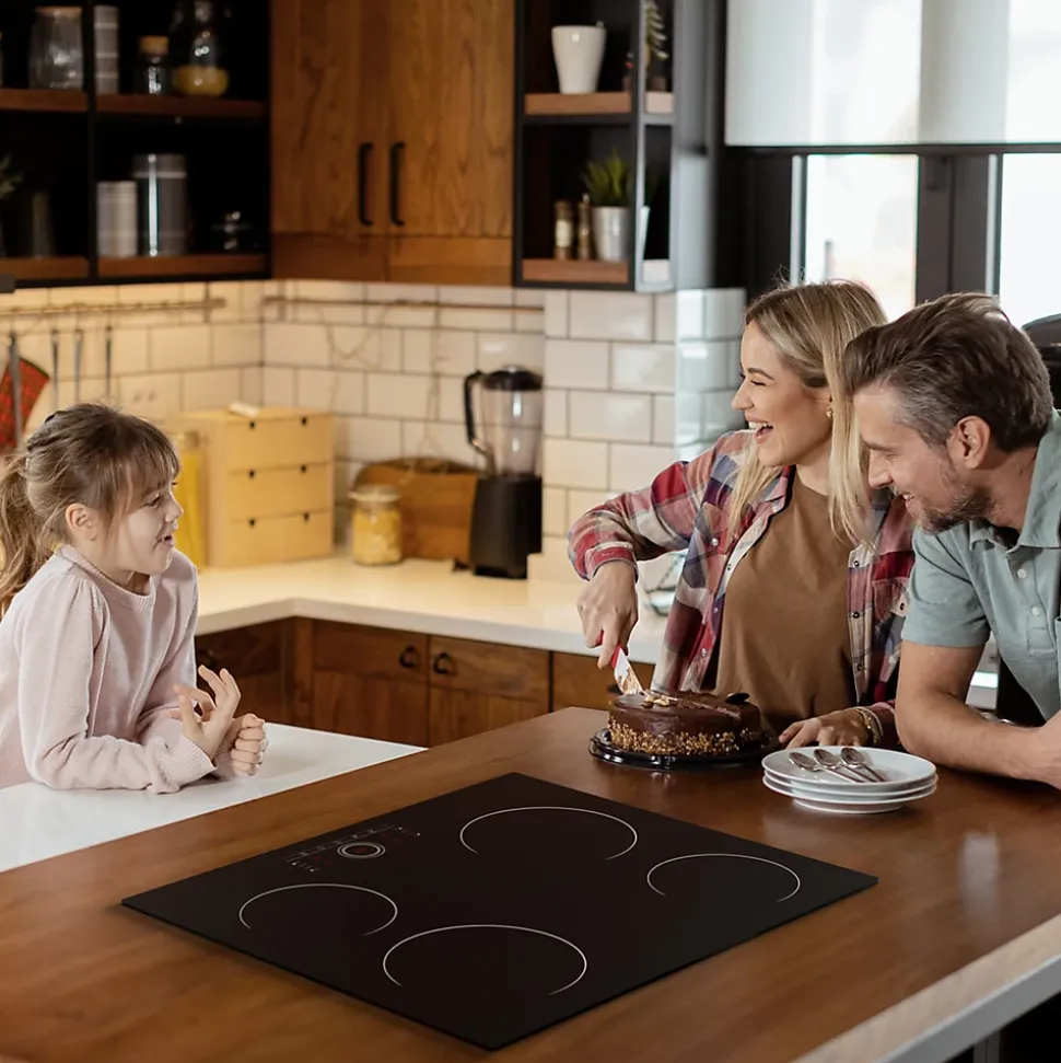 - Puissante plaque 6000W à 4 foyers – deux zones de 165mm/1200W et deux zones de 200mm/1800W, idéale pour les grandes familles.