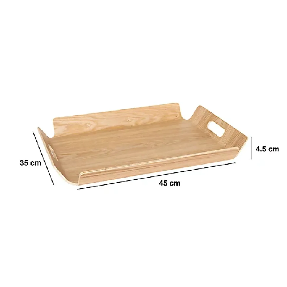 Plateau en bois design 45x35cmContenu : 1 plateauDimensions : L. 45 x P. 35 x H. 4.5 cmColoris : BambouMarque : 5 five simply smart