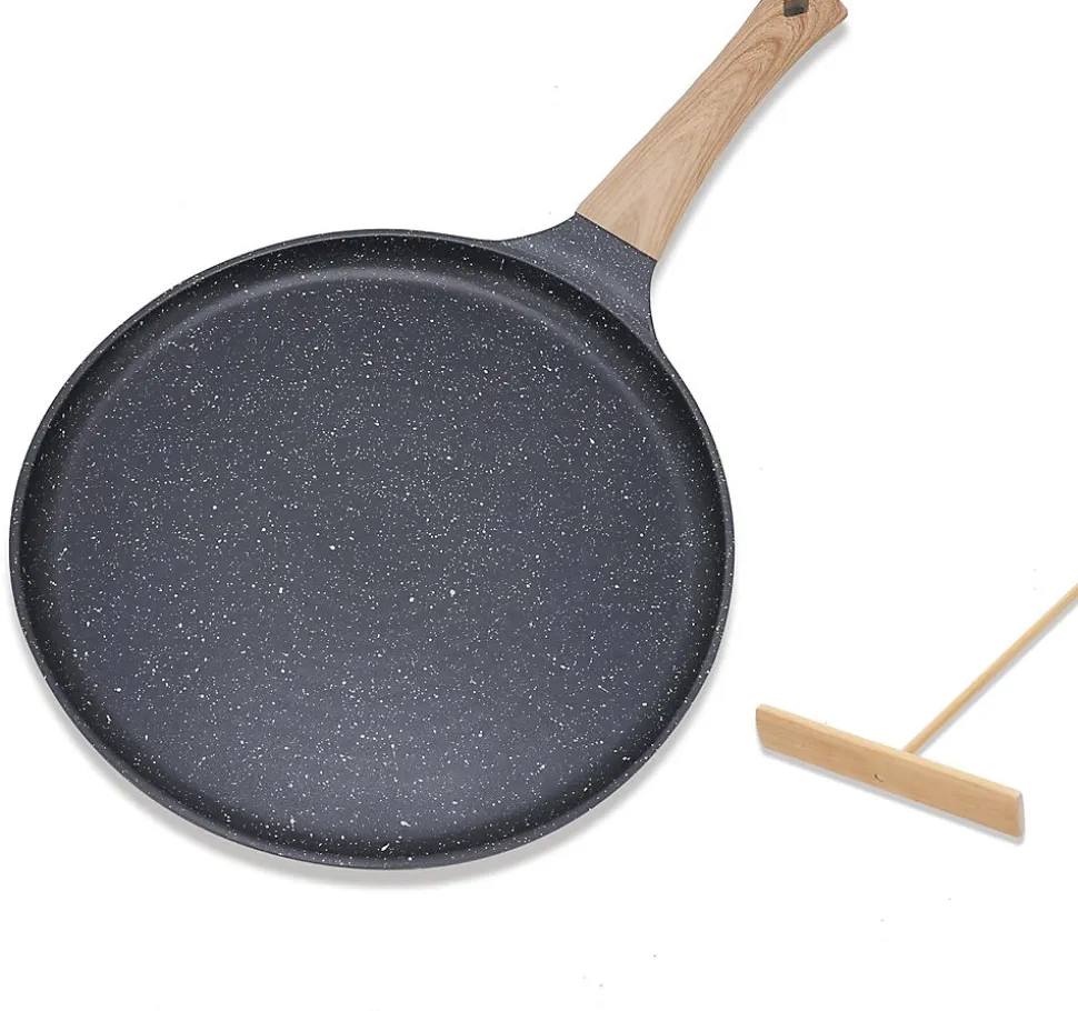 Cette poêle à crêpes de 20 cm est fabriquée en alliage d’aluminium robuste avec un revêtement antiadhésif en PTFE, résistant aux températures élevées et à l’usure, idéale pour un usage professionnel ou domestique. Son revêtement facilite le nettoyage et permet une cuisine plus saine. Polyvalente, elle convient pour la friture, la cuisson au four ou sautée, parfaite pour préparer pancakes, œufs frits, gâteaux mille-feuilles, soufflés, omelettes, muffins ou steaks. Compatible avec tous les types de feux, y compris l’induction, sa base assure une répartition uniforme de la chaleur pour une cuisson parfaite. La poêle est livrée avec des outils complémentaires pour une expérience de cuisson pratique et facile.
