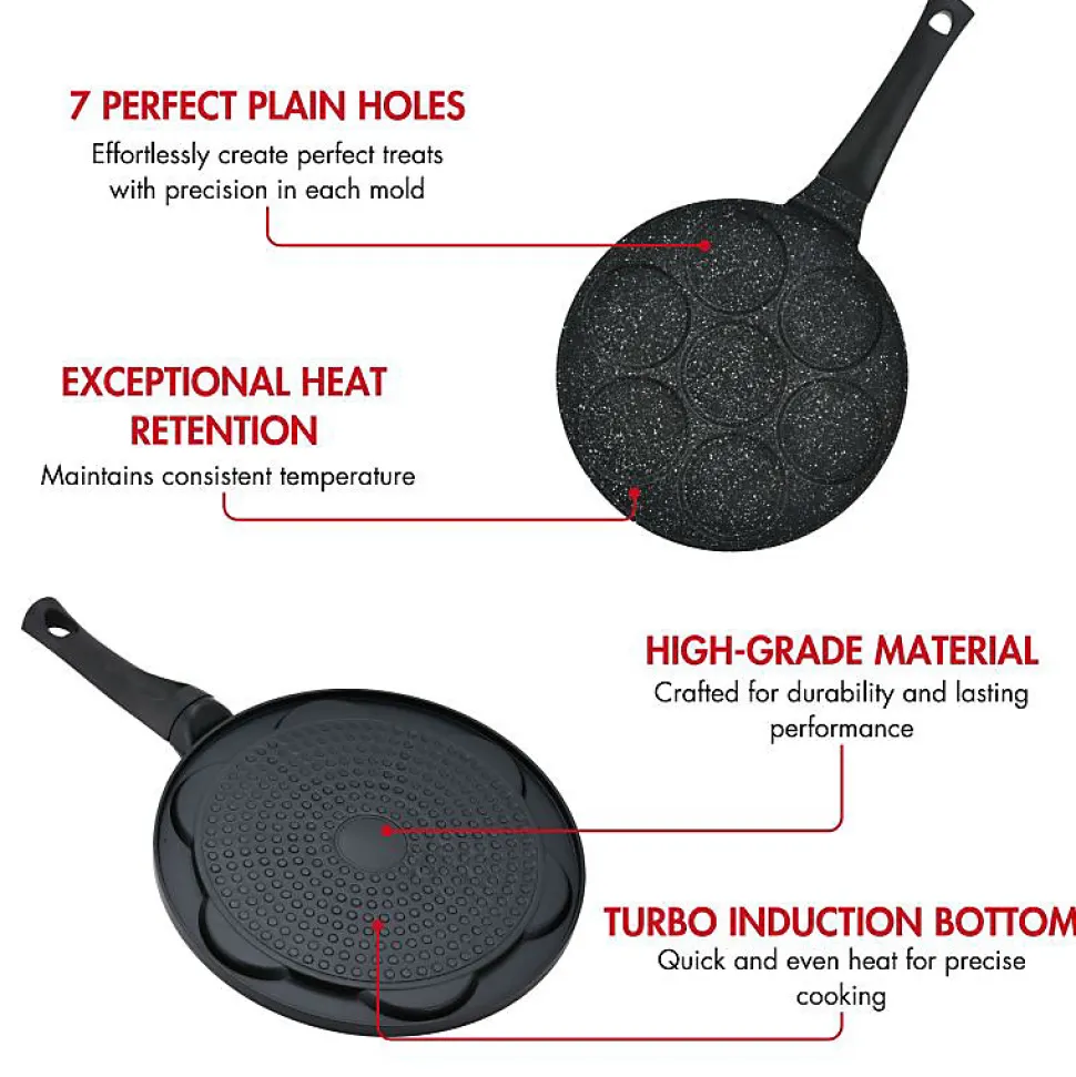 Présentation du Herzberg HGCP267HO, une poêle à crêpes et à crêpes à revêtement en marbre de 26 cm dotée d’un design uni élégant et polyvalent à 7 fentes, conçue pour améliorer votre expérience culinaire du petit-déjeuner. Fabriquée avec un revêtement de qualité alimentaire, cette poêle est non seulement sans téflon, mais également 100 % sans PFOA et PTFE, garantissant un environnement de cuisson sain et sûr pour vous et votre famille. La construction en aluminium de 3 mm d’épaisseur, obtenue grâce à un processus intégral de moulage sous pression, offre une durabilité améliorée et un chauffage plus rapide et plus uniforme.Avec ses sept fentes, cette poêle à crêpes vous permet de cuire différents aliments simultanément, offrant ainsi des combinaisons polyvalentes pour le petit-déjeuner. La poignée ergonomique reste froide rapidement, offrant une isolation thermique efficace pendant vos séances de cuisine. La poêle chauffe rapidement et uniformément grâce à la robustesse de l’aluminium moulé sous pression, garantissant que vos crêpes ou omelettes sont parfaitement cuites sans aucune tache sombre.Retourner les crêpes est désormais un délice grâce aux sept moules conçus pour un retournement rapide et pratique. La conception du trou de suspension permet un rangement facile dans votre cuisine, économisant ainsi un espace précieux. Le fond à trois couches assure un chauffage uniforme, des propriétés antiadhésives résistantes à l’usure et des capacités d’économie d’énergie. La poignée en bakélite offre une isolation thermique, des fonctions anti-brûlure et une prise confortable.Le nettoyage est un jeu d’enfant grâce au revêtement en céramique antiadhésif sans PTFE, PFOA, PLOMB et CADMIUM. Adaptée aux plaques de cuisson à gaz, cuisinières, induction, électriques, halogènes et vitrocéramiques, cette poêle offre une compatibilité polyvalente. Il va au lave-vaisselle, offrant ainsi plus de commodité.La c