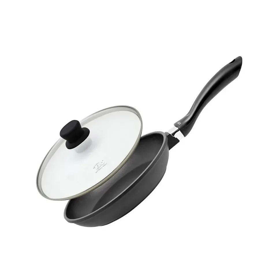 - COMPOSITION : La poêle de cuisine est fabriquée en fonte d’aluminium avec un revêtement antiadhérent en céramique Elodur sans PFASet le couvercle est en verre avec une poignée en plastique qui ne chauffe pas durant la cuisson
