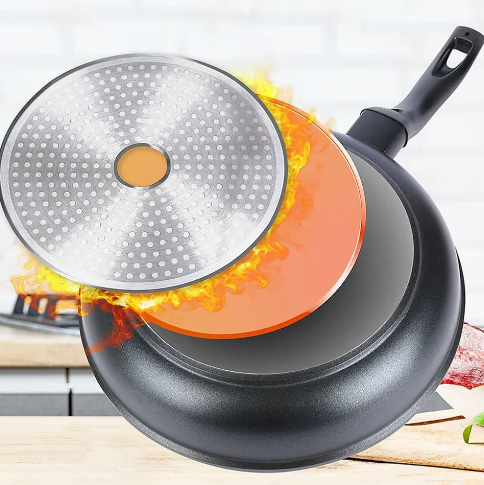 La poêle GRANDE en granit antiadhésive de 28 cm, accompagnée d’un couvercle en verre, est conçue pour la friture et le mijotage. Elle s’adresse à ceux qui recherchent une cuisson saine et efficace, avec une chaleur répartie uniformément et une longue durabilité. Caractéristiques Diamètre: 28 cm Dimensions extérieures: longueur 48 cm, hauteur de la poêle 6,5 cm, hauteur avec poignée 9 cm, hauteur avec couvercle 12 cm Matériau: aluminium moulé Couvercle: verre et acier inoxydable Revêtement: granit antiadhésif sans PFOA ni PTFE Poignée: matériau durable de couleur noire Utilisation: adaptée à la friture et au mijotage, avec peu d’huile Compatibilité: gaz, électrique, céramique, halogène et induction Entretien: compatible lave-vaisselle Accessoires: couvercle avec poignée et soupape d’évacuation de vapeur Origine: produit original de la marque tchèque Orion, fabriqué selon les normes européennes Avantages Cuisson homogène grâce à une répartition de chaleur efficace et au revêtement granit qui facilite la libération des aliments. Cuisson plus saine avec peu d’huile, sans compromettre le goût ni la texture des plats. Gain de temps et d’énergie: cuisson rapide et uniforme pour divers ingrédients (viandes, légumes, pancakes). Polyvalence d’utilisation sur tous types de plaques et induction, avec un couvercle transparent pour surveiller les plats sans révéler la chaleur. Conception robuste et durable, pensée pour durer et résister à un usage quotidien.