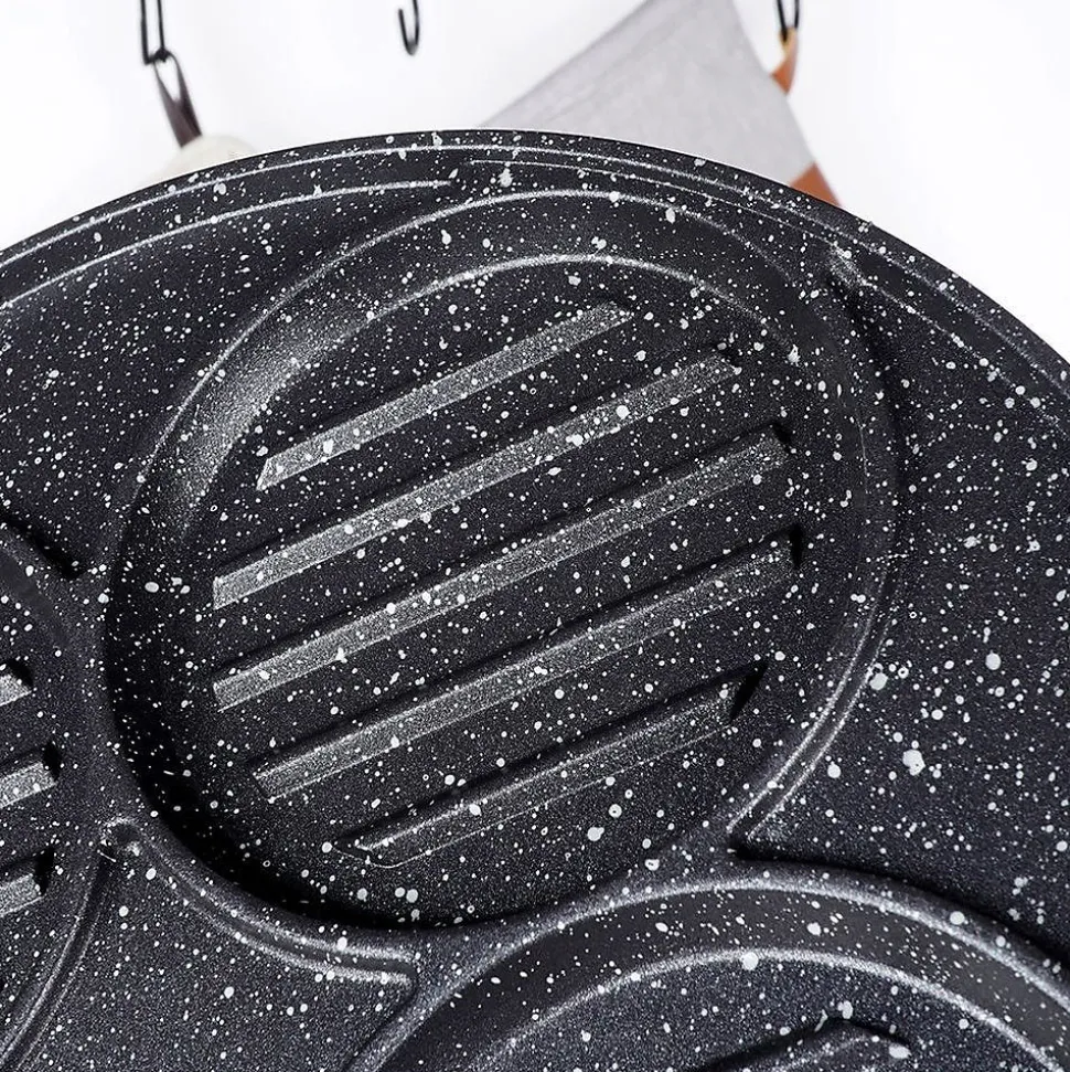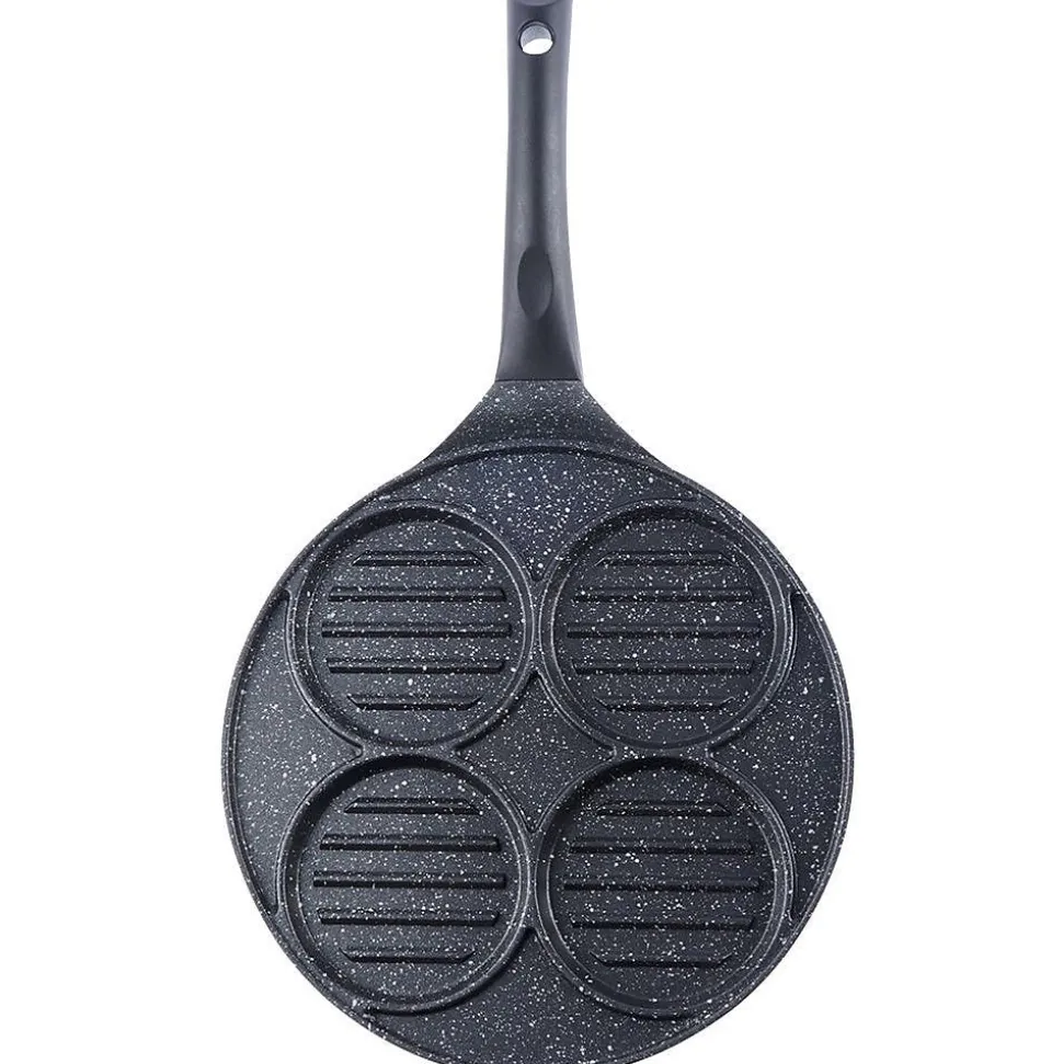 Découvrez la Poêle Gril en Granit avec Quatre Ouvertures de 46 x 26,5 cm, spécialement conçue pour préparer des burgers parfaitement formés et des œufs au plat. Ses quatre orifices de 10 cm chacun vous offrent une cuisson ciblée et homogène, tandis que la surface rainurée assure des traces grillées appétissantes et un enfournement rapide. Matériaux et revêtement: aluminium robuste avec revêtement antiadhésif granit PFLUON GRANIT, résistant aux rayures et aux hautes températures pour une longévité et une performance optimales. Conception pratique: surface rainurée pour une cuisson uniforme, avec une poignée ergonomique facilitant le transport et l’utilisation en toute sécurité. Ouvertures polyvalentes: quatre puits de 10 cm de diamètre chacun, parfaits pour les burgers, les steaks de légumes ou de poisson, et aussi pour les œufs au plat. Hauteur totale de la poêle: 2 cm. Cuisson rapide et économique: plaque qui permet une cuisson rapide et homogène tout en économisant l’énergie et en préservant les saveurs et les valeurs nutritionnelles des aliments. Compatibilité et entretien: adaptée à toutes les plaques de cuisson (gaz, électrique, céramique et induction) et compatible lave-vaisselle pour un nettoyage sans effort. Polyvalence et originalité: idéale pour les viandes, burgers, légumes et poissons, tout en offrant la possibilité de préparer des œufs au plat avec des résultats parfaits. Produit original de la marque tchèque Orion, fabriqué selon les standards européens. Offrez-vous des plats sains et délicieux grâce à cette poêle grill en granit qui combine performance, durabilité et facilité d’utilisation — pour des burgers parfaitement formés et des œufs au plat dignes d’un chef, à chaque cuisson.