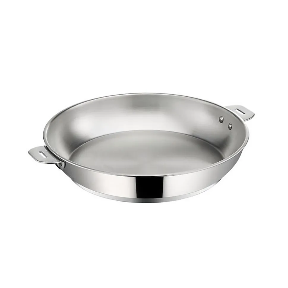 Poêle inox 30cm Lagostina – La poêle Salvaspazio+ 12138040530 de Lagostina est ingénieuse avec ses poignées amovibles. Robuste avec ses supports de poignées rivetés. – Type de produit : Poêle.Type de feux : Tous feux dont induction.Diamètre : 30 cm.Type de poignée / manche : Amovible (vendue séparément).Composition : Inox 18/10.Compatiblilité : Four et lave vaisselle.Couleur : Inox.