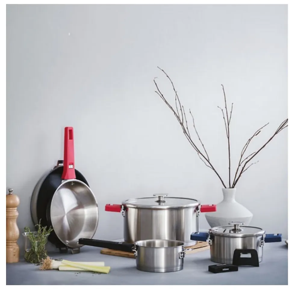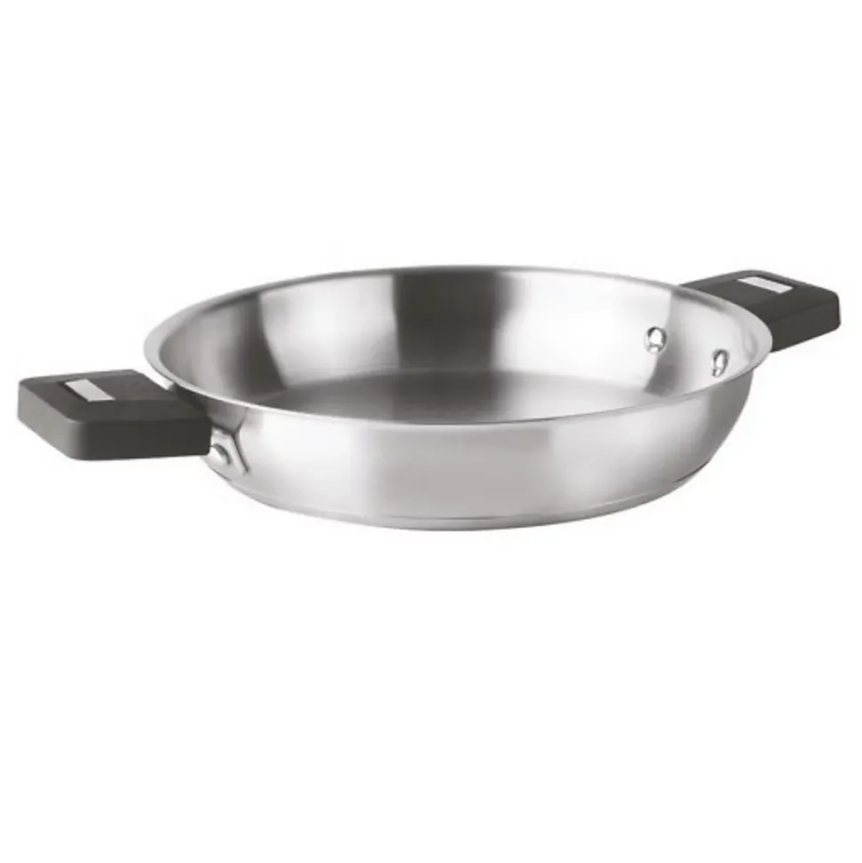 Découvrez la collection COMBI et son ingénieux système Click & Lock pour un gain de place optimal !Adaptez vos poêles et casseroles à vos besoins en changeant facilement les poignées et les anses. Et pour encore plus de praticité, elles sont empilables !Fabriquée en acier inoxydable 18/10 de haute qualité, offrant résistance, durabilité et hygièneFinition satinée intérieure et extérieureFond thermodiffuseur sandwich (inox / alu / inox) pour une diffusion rapide et homogène de la chaleurPoignées et anses (vendues séparément) disponibles en trois couleurs : noir, rouge et bleuEmpilable pour un rangement optimiséCompatible avec le four traditionnel (sans poignées ni anses)Facile à nettoyer : passe au lave-vaisselleCompatible avec tous types de feux, y compris l’induction.Collection : Combi Matière : Acier inoxydable (inox) Couleur : Argent / Métallique Longueur : 25.00 cm Largeur : 21.50 cm Hauteur : 4.00 cm Diamètre : 20.00 cmCapacité : 100.00 cl Compatible Lave-vaisselle