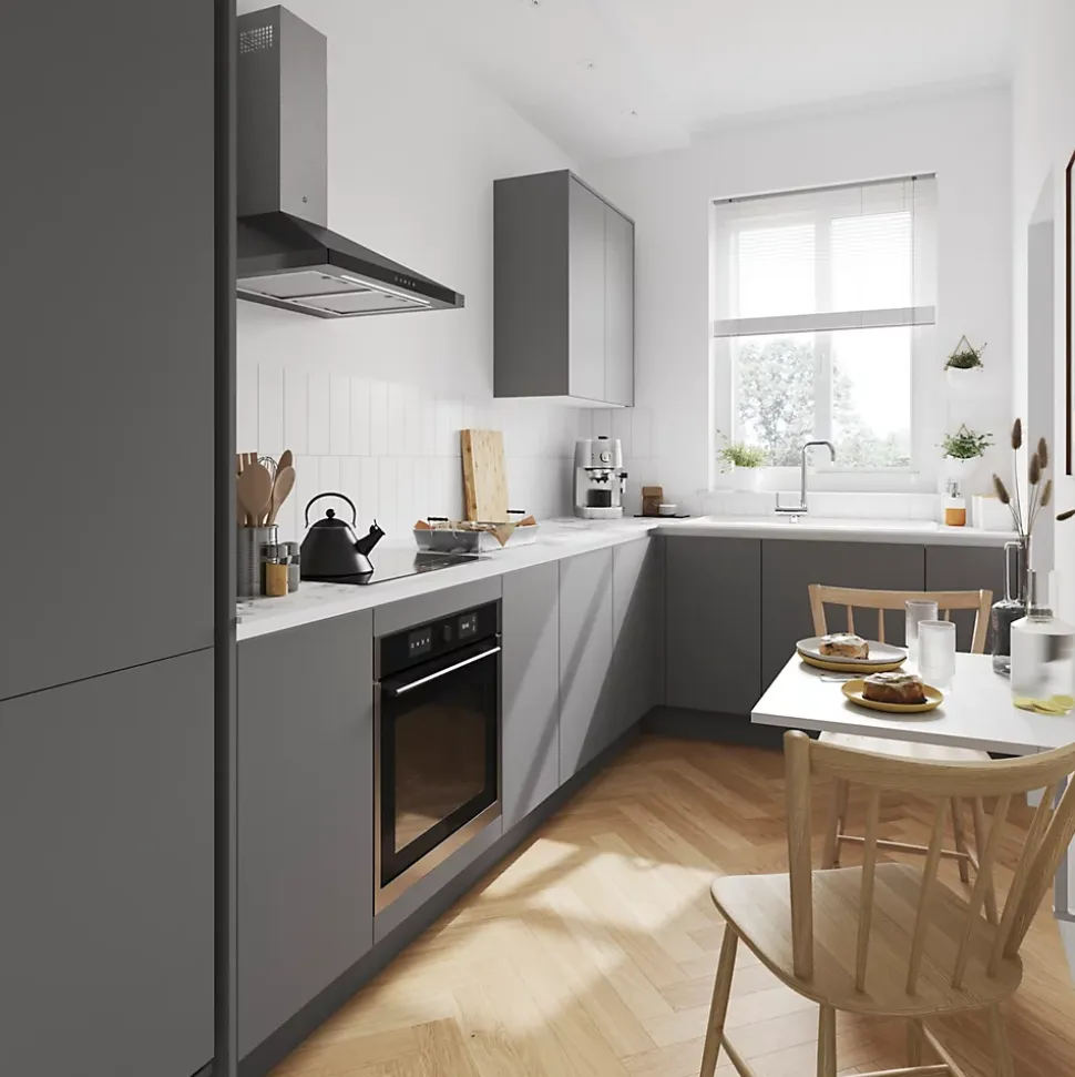 Notre gamme présente les dernières tendances en matière de styles, de couleurs et de finitions de porte. Le tout se coordonne parfaitement avec le reste de notre gamme GoodHome pour la cuisine. La gamme de portes Stevia inclut à la fois des finitions brillantes qui reflètent la lumière et la couleur de votre mur et une finition mate qui limite les traces de doigts et les imperfections, tout en créant une finition uniforme sous tous les angles. La finition gris étain mat élégante de cette façade confèrera à votre cuisine un aspect moderne.