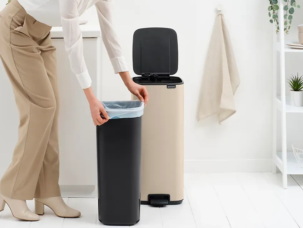 Vous voulez une grande poubelle avec un maximum de style ? La poubelle à pédale Brabantia 30 litres est belle à l’extérieur comme à l’intérieur. Peu encombrante, dotée d’un mécanisme à pédale hygiénique et d’un couvercle qui se ferme en douceur – rien n’est trop grand pour cette élégante poubelle. Besoin de la nettoyer ? Retirez le seau intérieur et portez la poubelle par sa poignée de transport. Elle possède même une fonction stay-open qui la maintient en position ouverte pour faciliter le nettoyage. Cette grande et belle aide-ménagère peut également se placer contre un mur. Choisissez Bo !