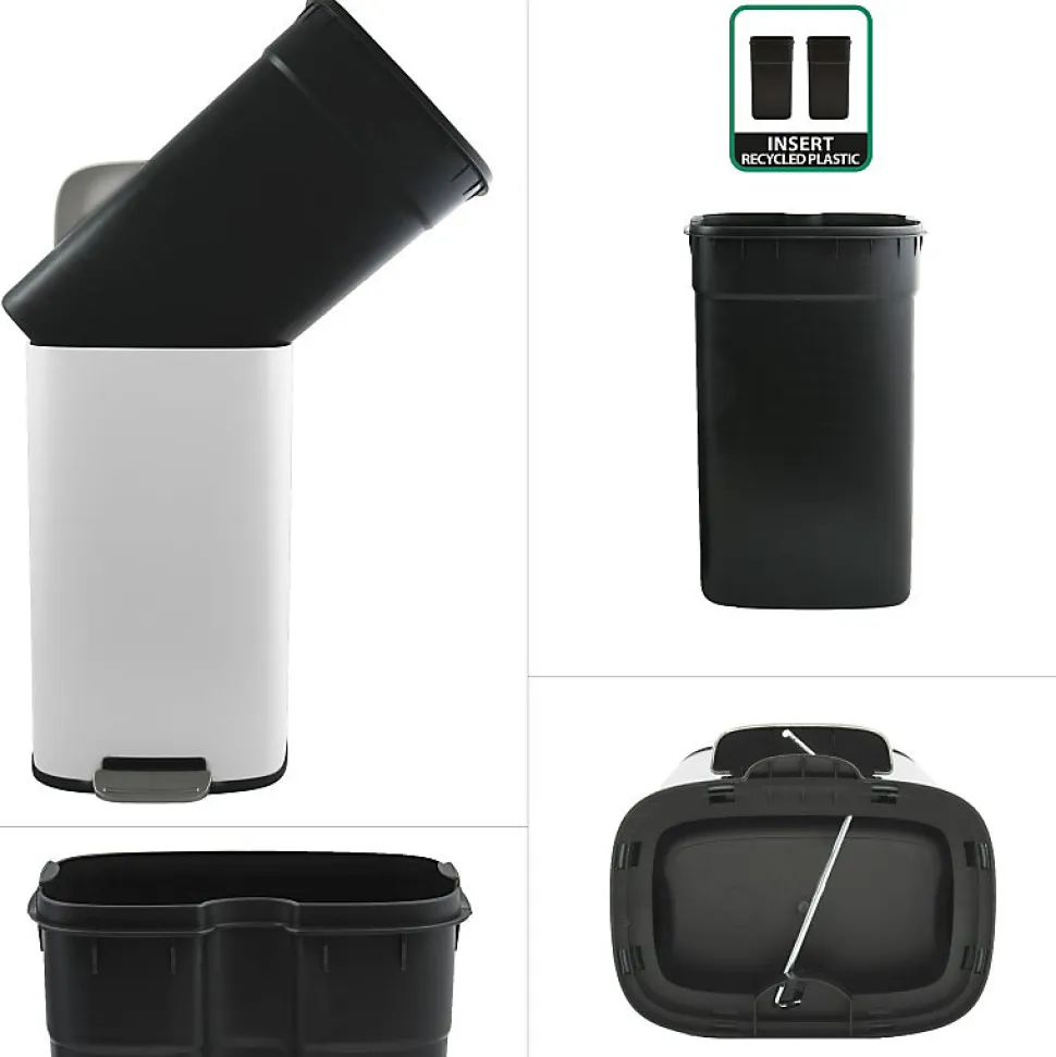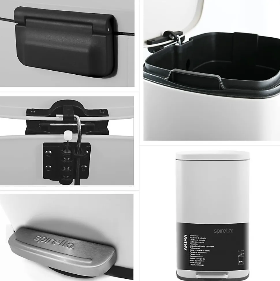 Poubelle Akira de la marque SPIRELLA.Couleur tendance, cette poubelle de 30L s’intègre parfaitement dans chaque pièce. L’insert en plastique avec poignée de transport pratique permet de vider et de nettoyer facilement le seau. La pédale permet d’ouvrir la poubelle sans effort. Confortable à ouvrir, vous n’avez pas besoin de vous baisser. La pédale de taille très grande assure une ouverture facile. Muni d’un socle en plastique de protection pour eviter des rayures au sol. La poubelle se fond dans dans n’importe qu’elle pièce de façon ultra moderne. Ainsi, Spirella associe design et ergonomie pour faire d’une poubelle un objet indispensable et confortable lors de son utilisation.Dimensions: 34,3×23,5×62,9cm Contenance: 30LCouleur: Blanc Matière: Acier
