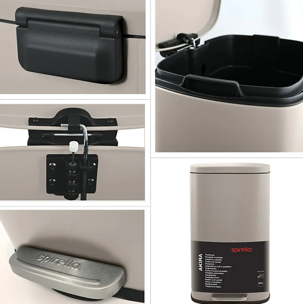 Poubelle Akira de la marque SPIRELLA.Couleur tendance, cette poubelle de 30L s’intègre parfaitement dans chaque pièce. L’insert en plastique avec poignée de transport pratique permet de vider et de nettoyer facilement le seau. La pédale permet d’ouvrir la poubelle sans effort. Confortable à ouvrir, vous n’avez pas besoin de vous baisser. La pédale de taille très grande assure une ouverture facile. Muni dun socle en plastique de protection pour éviter des rayures au sol. La poubelle se fond dans dans n’importe qu’elle pièce de façon ultra moderne.Ainsi, Spirella associe design et ergonomie pour faire d’une poubelle un objet indispensable et confortable lors de son utilisation. Dimensions: 34,3×23,5×62,9cm Contenance: 30L Couleur: Taupe Matière: Acier