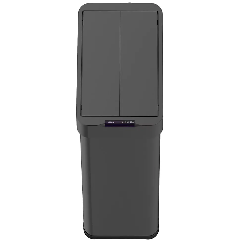 La poubelle automatique SILVERLAKE 90L noir mat de Kitchen Move associe style moderne, grande capacité et confort d’utilisation. Son système d’ouverture papillon automatique facilite le dépôt des déchets sans effort, tout en économisant de l’espace sous les plans de travail. Son corps en acier inoxydable noir mat et son couvercle en ABS assorti s’intègrent avec élégance dans les cuisines design ou les bureaux contemporains. Le capteur infrarouge détecte vos mouvements à environ 15 cm pour une ouverture sans contact. Elle fonctionne avec 4 piles AA (non incluses) ou via port DC USB (câble fourni). Le cerclage intérieur maintient le sac solidement, la base antidérapante assure une bonne stabilité, et la fermeture silencieuse rend son usage agréable au quotidien. Facile à nettoyer grâce à sa surface anti-traces, cette poubelle allie hygiène, confort et esthétisme. Dimensions : 42,4 × 26,9 × 84 cm.