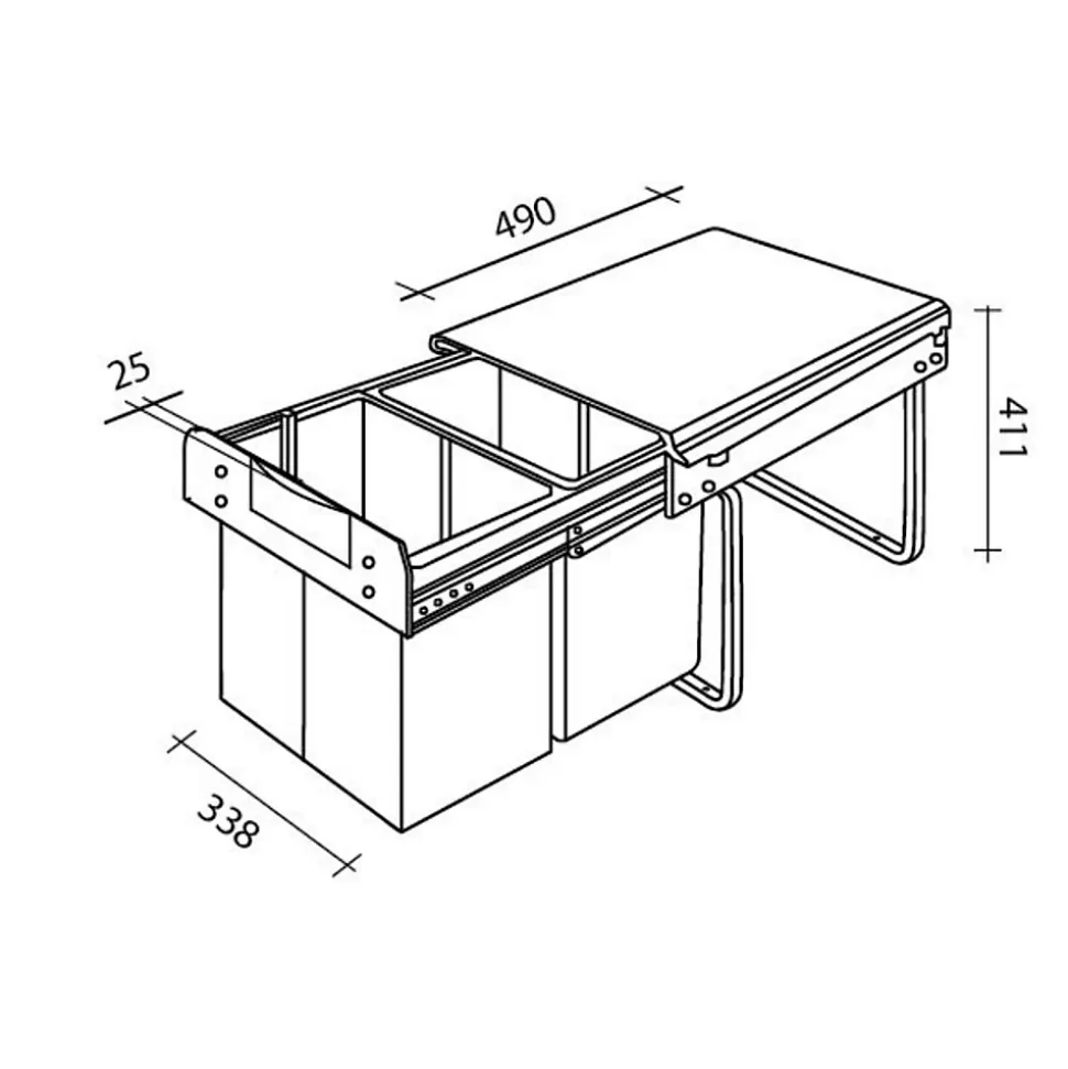 • Poubelle double compartiment • • Poubelle manuelle • • Poubelle fermeture silencieuse • • Meuble sous évier 40 cm min