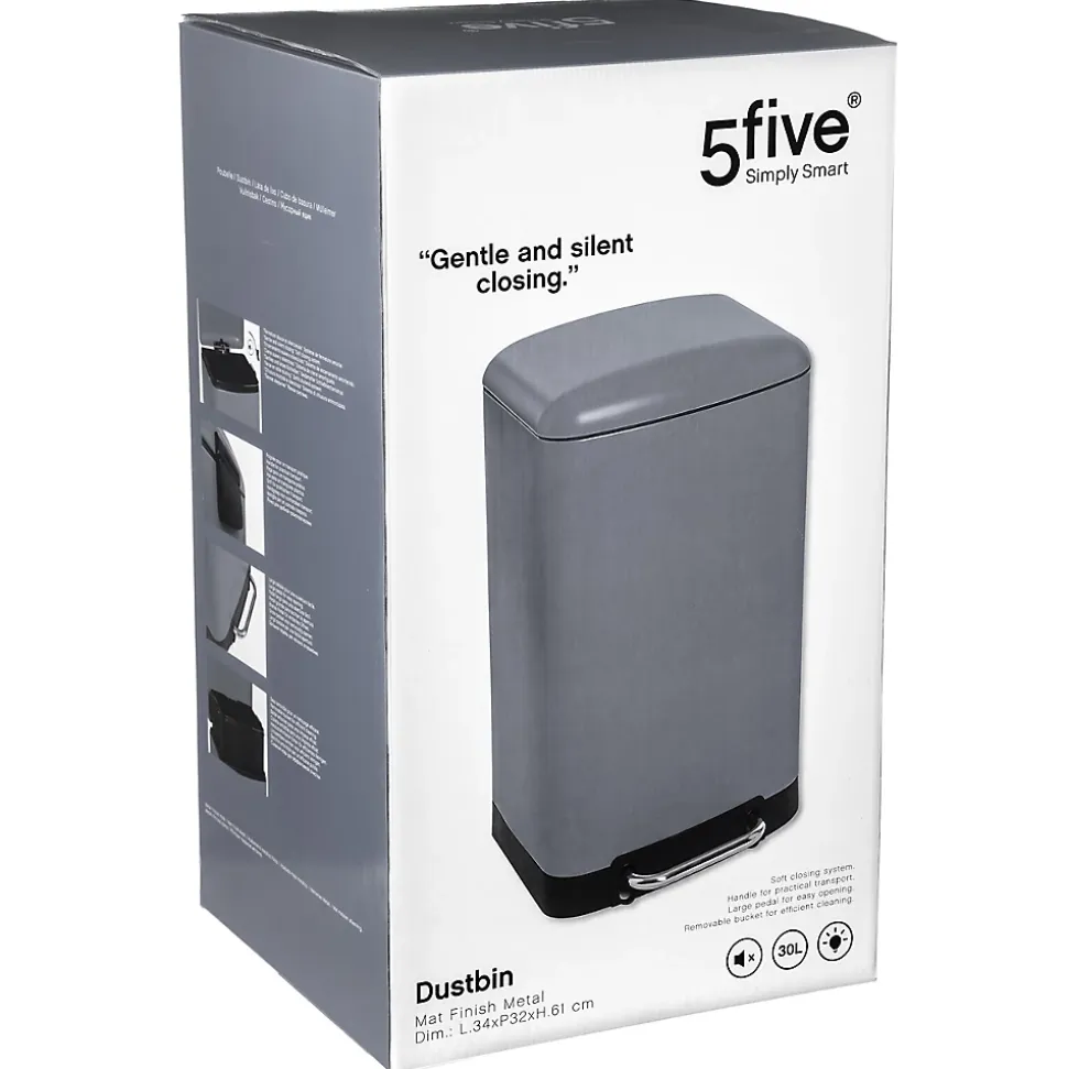 Poubelle de cuisine 30 l à pédale rectangulaire Ariane 5Five métallique coloris gris anthracite L.34 x P.32 x H.61 cm