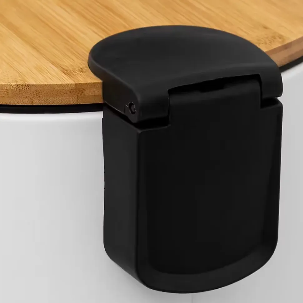 - La poubelle Modern Color dispose d’un couvercle 100% bambou, d’un seau amovible pour le nettoyage facile et d’une pédale métal renforcée.