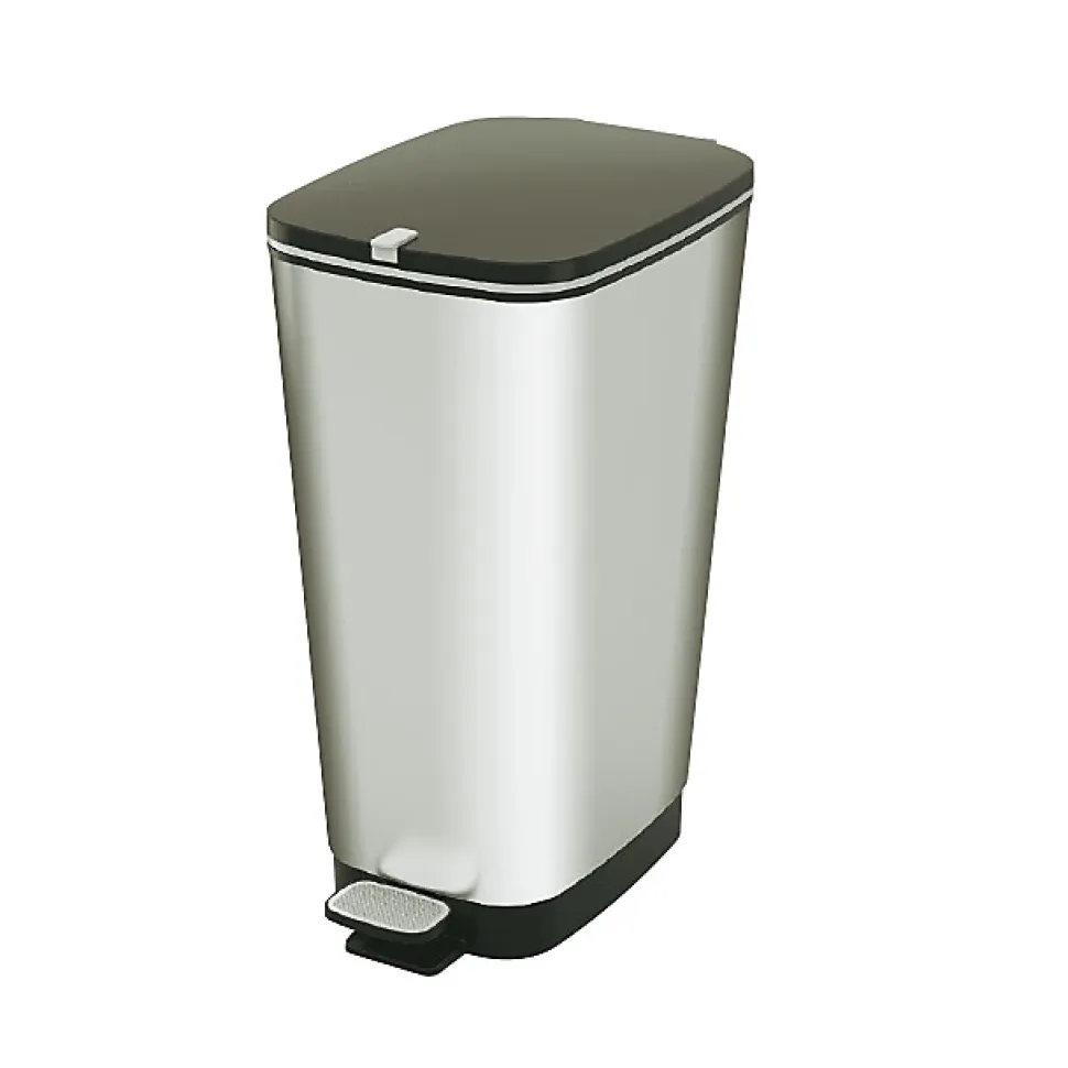 Poubelle de cuisine 45L en plastique coloris argent ouverture à pédale l.29 x P.44,5 x H.60,5 cm