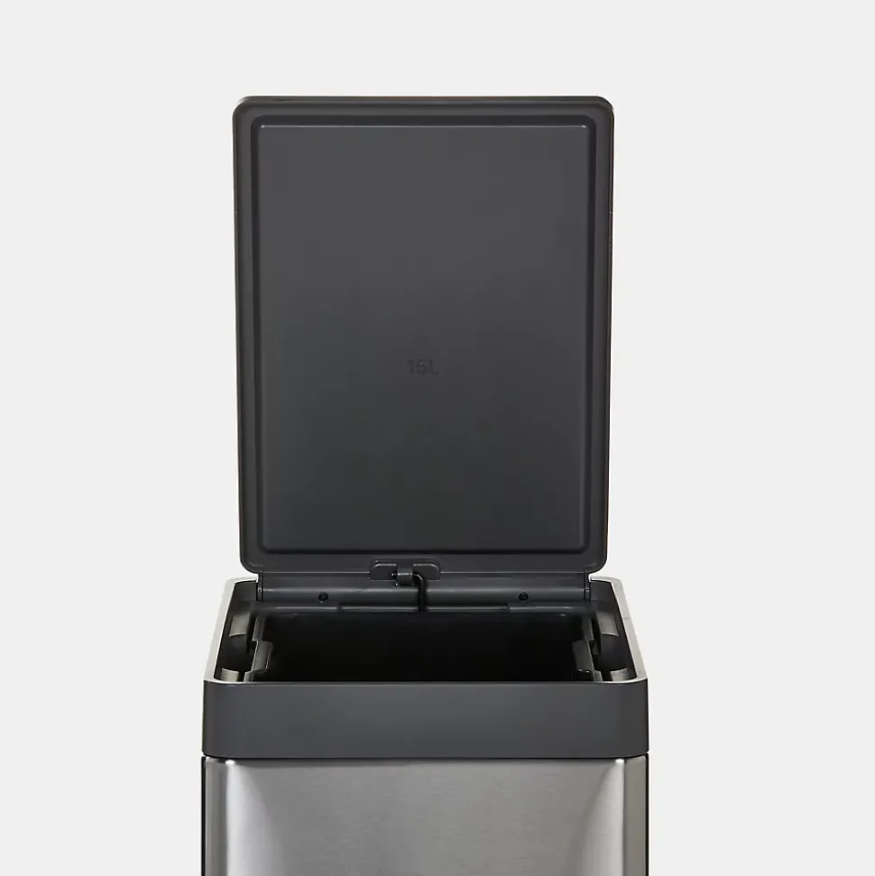 - Son système de verrou permet de garder le couvercle ouvert lorsque le rebord dans la base de la poubelle soutient le bac interne lors du nettoyage et du retrait du sac