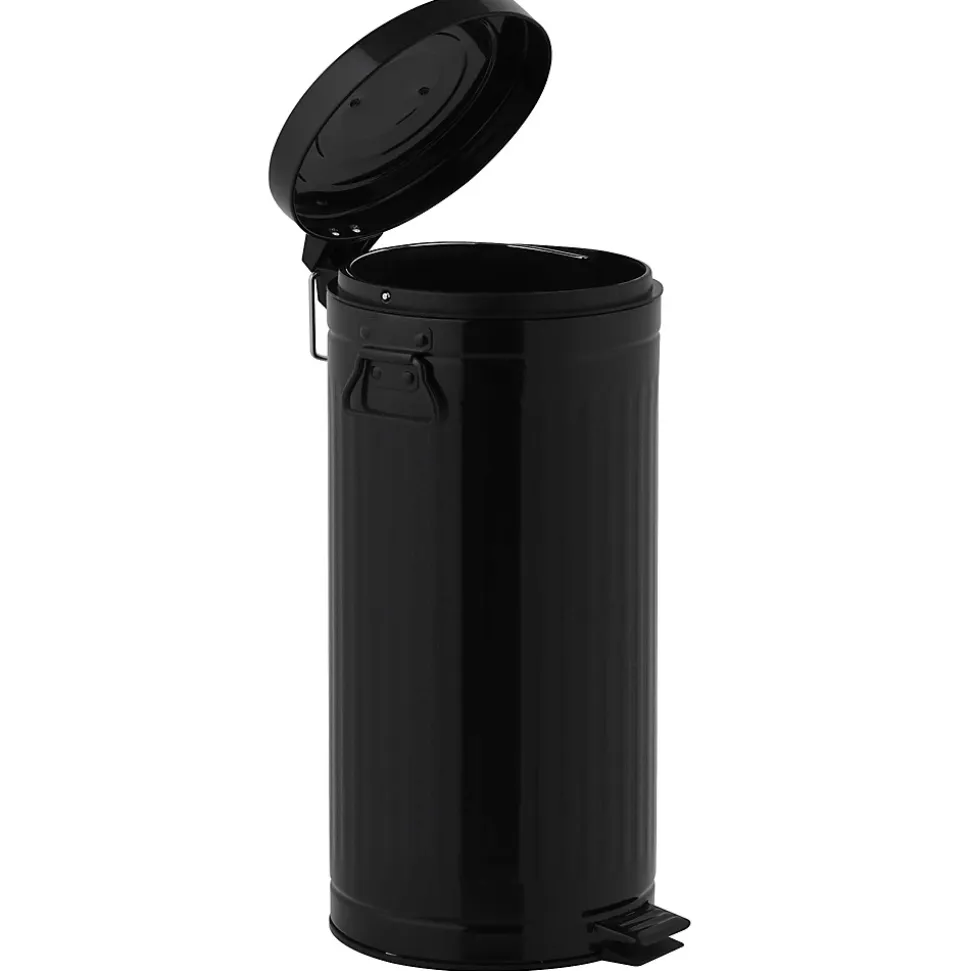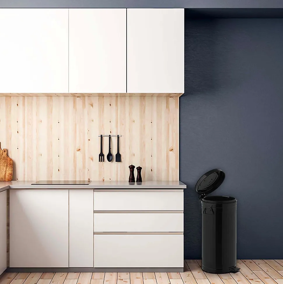 - Poubelle de cuisine à pédale ronde avec seau capacité 30 L modèle Brooklyn en acier inoxydable couleur noir. Dimensions : Ø 30 x 69 cm. Poids : 3 kg. Corps et couvercle en acier inox (0,4 mm) . Style industriel