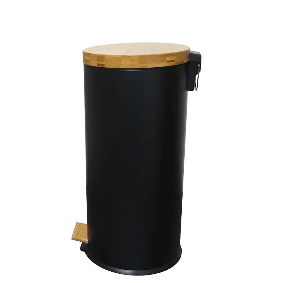 - Poubelle de cuisine à pédale ronde avec seau capacité 30 L modèle Forest en acier inoxydable couleur blanc. Dimensions: Ø 30 x 63 cm. Poids : 3,15 kg. Corps en acier inox (0,4 mm) et couvercle en bois. Nouveau modèle