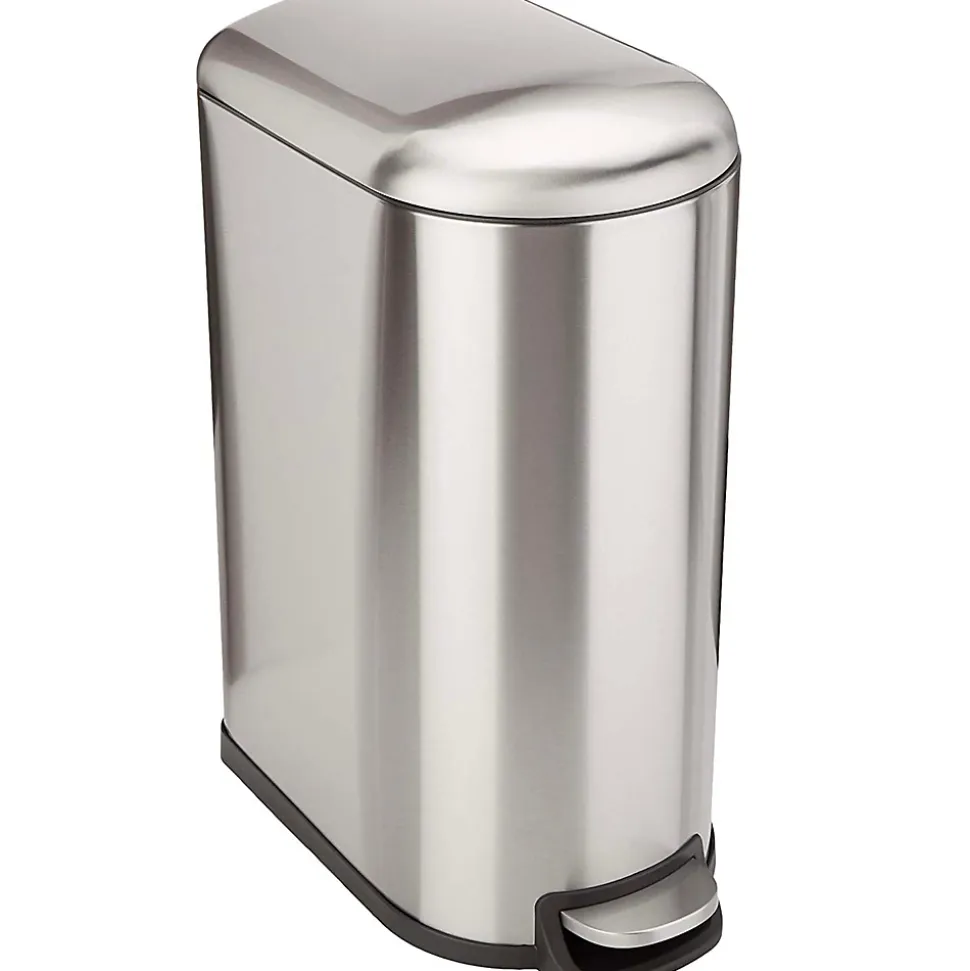 - Poubelle cuisine étroite à pédale au pied manuelle. Matériaux robustes. Mécanisme de pédale solide. Très simple d’utilisation. Fermeture insonore et anti-odeurs. Silencieuse grâce à son système d’amortisseur et de fermeture ralentie. Ouverture facile grâce à sa large pédale. Qualité professionnelle. finition haut de gamme. Facile à déplacer grâce à une poignée de transport solide. Facile à nettoyer grâce au seau intérieur en plastique