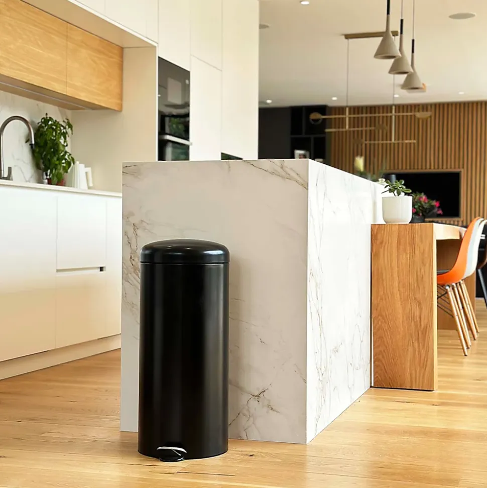 - Poubelle de cuisine à pédale ronde avec seau capacité 30 L modèle Urban en acier inoxydable couleur noir. Dimensions: Ø 29 x 66cm. Poids : 3 kg