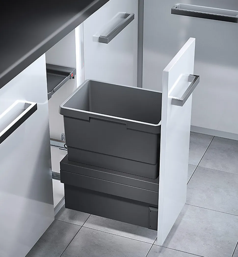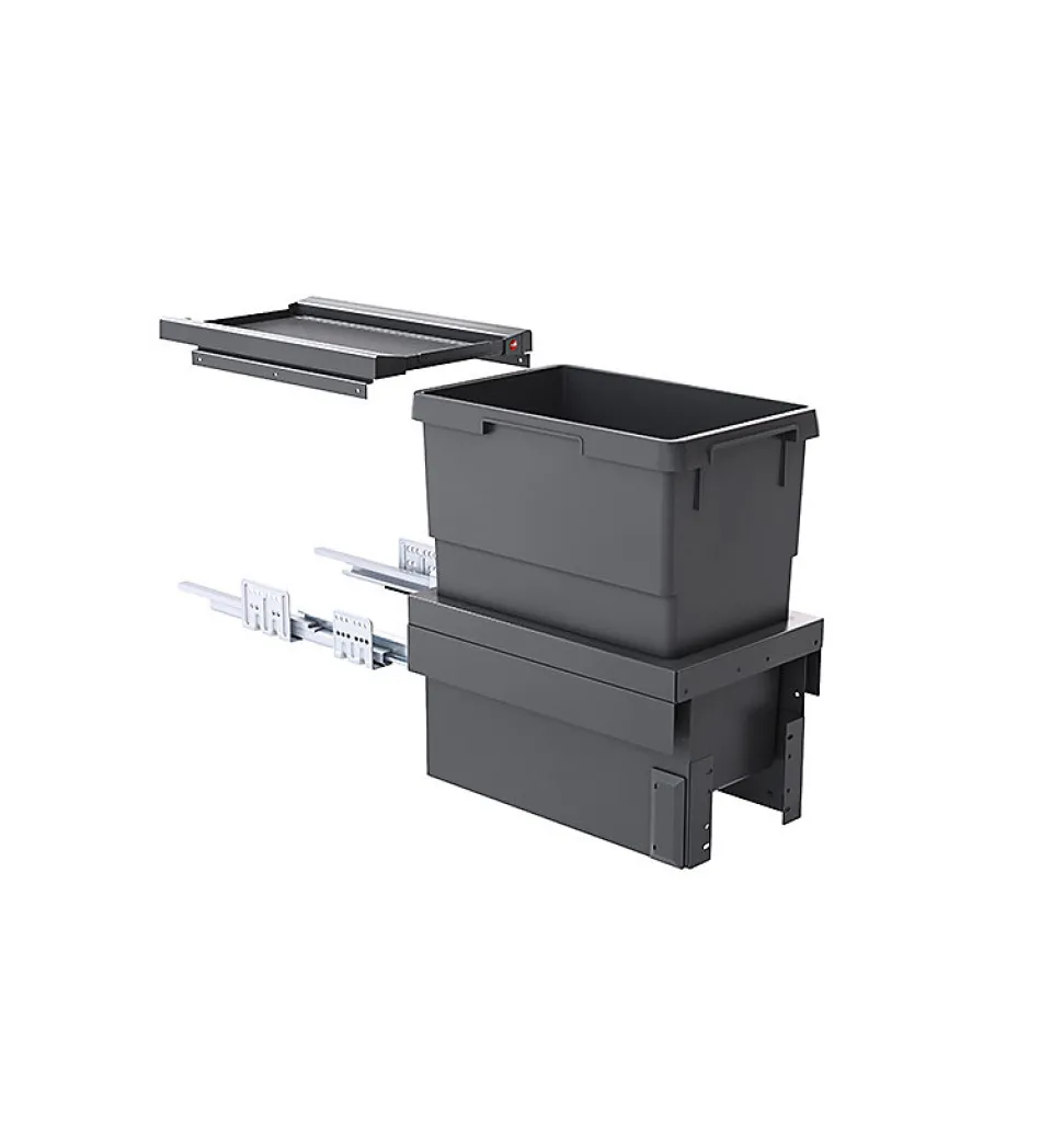 Poubelle de cuisine encastrable Hailo Cargo Synchro 30L – Grise anthracite – 1 bac amovible de 30L en plastique gris anthracite – Conçue pour meubles coulissants sans tiroir d&
