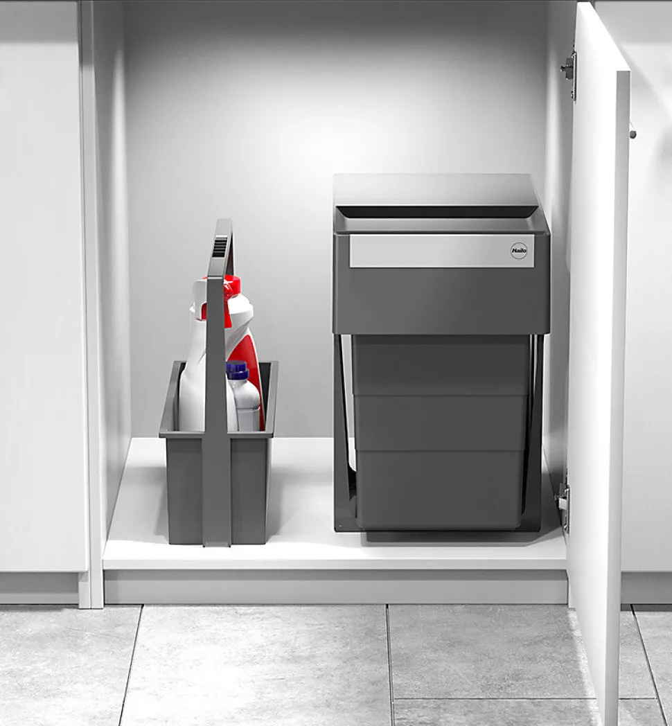 Poubelle de cuisine encastrable 28L Hailo AS Tandem – Gris Anthracite – 1 bac amovible de 28L – Ouverture de la poubelle à la main – Conçue pour meubles à porte battante d’une largeur minimum de 30 cm – Se fixe au sol du meuble – Glissières silencieuses et durables – Montage simple et rapide – Design moderne