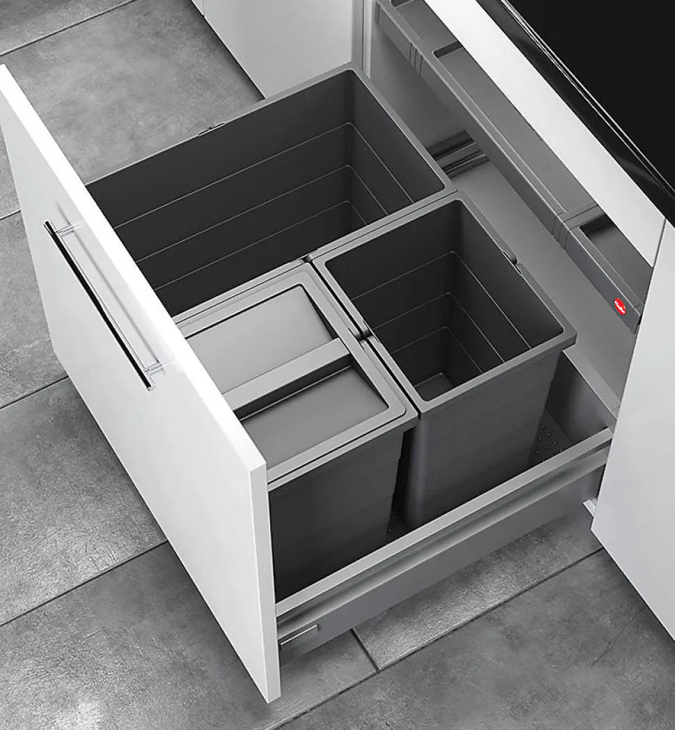 La poubelle de cuisine encastrable AS Allegro S350 28L + 2x13L Hailo La poubelle encastrable Hailo AS Allegro S350 s’intègre facilement dans un tiroir de meuble existant de 60 cm de large et propose une configuration de tri sélectif équilibrée avec un bac de 28 litres et deux bacs de 13 litres. Ce système offre une capacité généreuse tout en s’adaptant aux besoins quotidiens d’une cuisine familiale. Les bacs sont maintenus en place par un tapis antidérapant, sans fixation, pour une installation simple et un entretien facilité. En utilisant les glissières du tiroir, l’accès est fluide et complet. Pratique, silencieuse et robuste, cette poubelle encastrable combine modularité, grande capacité et qualité de fabrication allemande. Avantages et points forts de la poubelle encastrable AS Allegro S350 28L + 2x13L oe?Tapis antidérapant oe?Design épuré oe?Personnalisation selon vos besoins Schémas d’intégration de la poubelle encastrable AS Allegro S350 28L + 2x13L Choisir sa poubelle de cuisineUne décoration métal et inox dans votre cuisine5 étapes simples pour choisir sa poubelle encastrableComment organiser son emménagement ?Hailo en vidéoHailo dans les médiasTrouvez la poubelle design idéaleLe tri sélectif, comment s’en sortir ?Optimiser son organisation avec HailoChoisir sa poubelle encastrable Previous Next