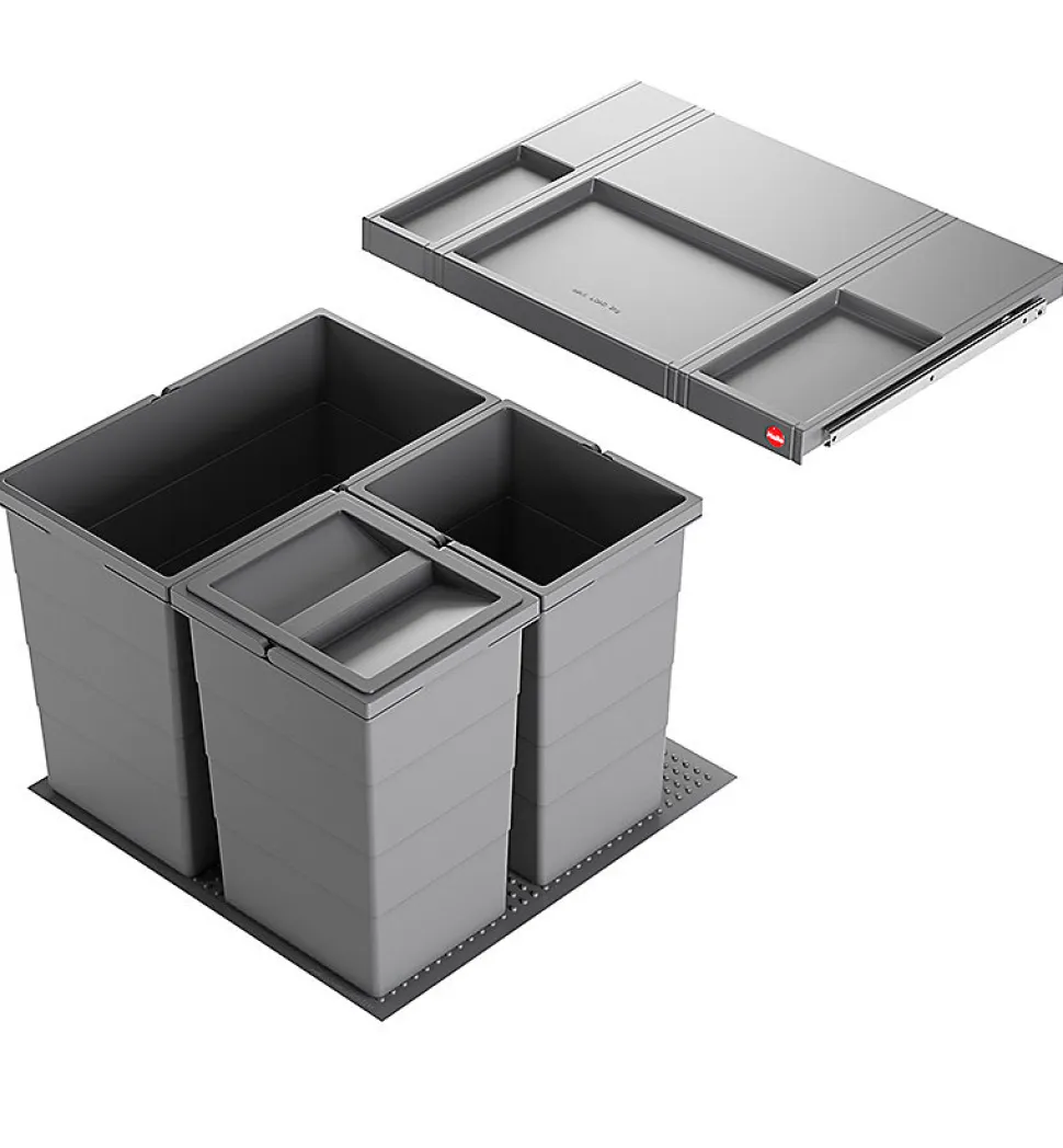 Poubelle de cuisine encastrable Hailo AS Allegro S350 28L + 2x13L – Gris anthracite – 1 bac de 28L et 2 bacs de 13L amovibles – Couvercle amovible avec rangements supérieurs – Tapis antidérapant et stabilisant pour les bacs – Nettoyage facile – Conçue pour meubles coulissants avec tiroir d&