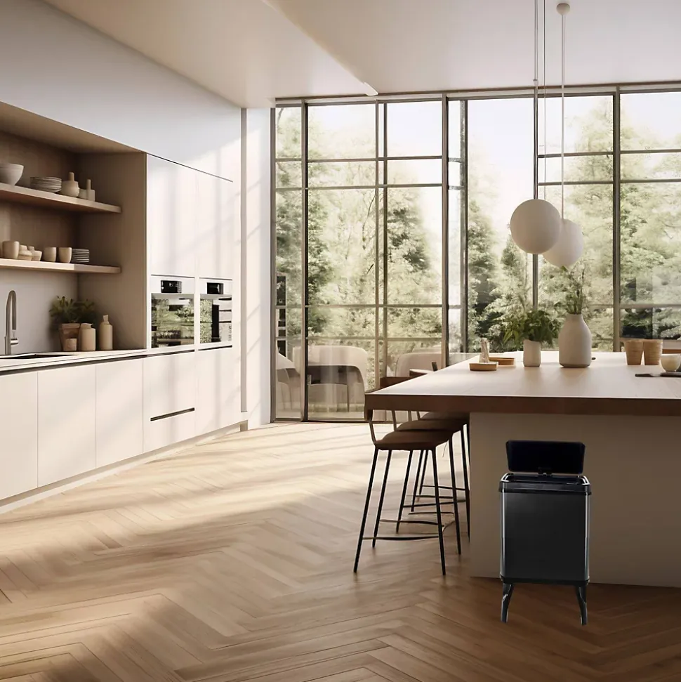 Poubelle de recyclage intelligente WELLHOME à ouverture automatique et contact manuel 15 L + 15 L 35,5 x 26 x 60 cm Noir