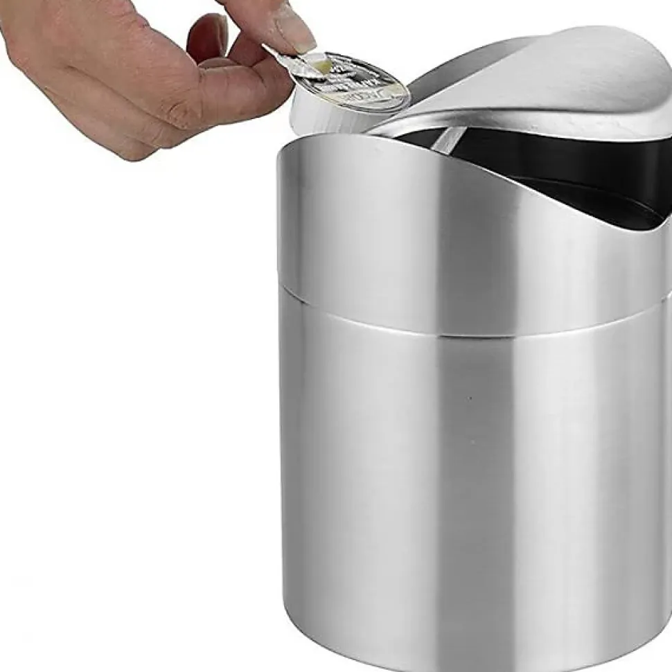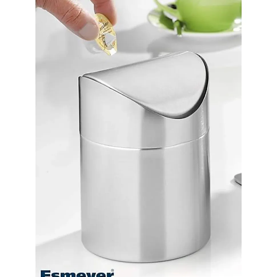 caterado by Esmeyer Poubelle de table « Swing »• avec couvercle basculant• en acier inoxydable chrome-nickel brossé 18/10• résistant lave-vaisselle• hygiénique et élégant sur tout bureau Hauteur: 170 mm, diamètre: 120mm