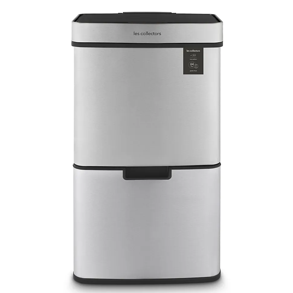 CAPACITÉ ET DIMENSIONS : Cette poubelle de tri à capteur offre une capacité totale de 64 L, répartie en un compartiment principal de 42 L et deux compartiments inférieurs de 11 L chacun. Elle mesure 42 x 31,5 x 78,5 cm, idéale pour une utilisation fonctionnelle et compacte.MATÉRIAUX ET TECHNOLOGIE : Conçue en acier inoxydable avec une finition anti-traces de doigts, elle est durable et facile à entretenir. L’ouverture supérieure automatique fonctionne grâce à un système de détection infrarouge, tandis que les compartiments inférieurs s’ouvrent manuellement.PRATICITÉ ET CONFORT : Équipée d’un couvercle à fermeture silencieuse, elle fonctionne avec 6 piles rechargeables AA (non incluses) et inclut une poubelle à déchets verts de 3 L. Idéale pour un tri des déchets hygiénique et moderne.