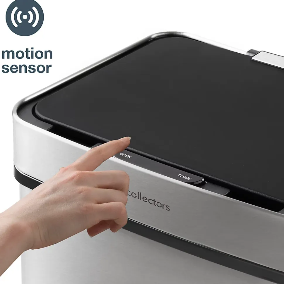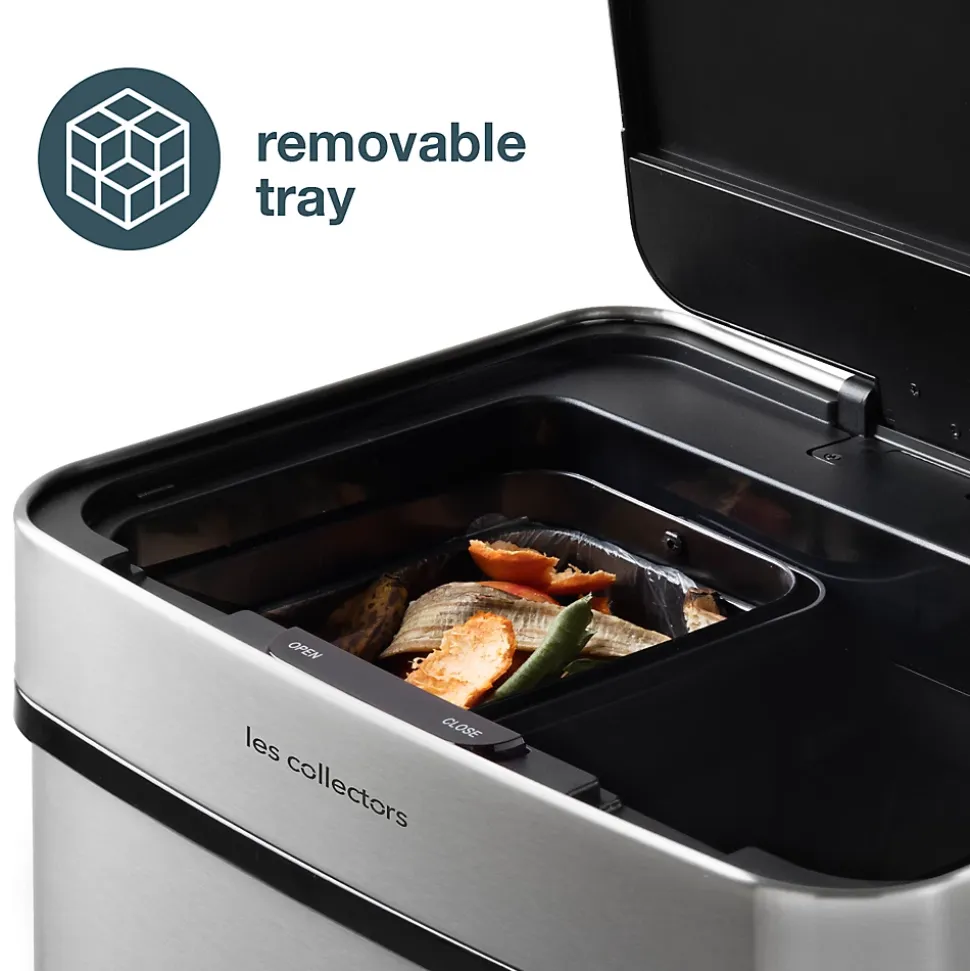 CAPACITÉ ET DIMENSIONS : Cette poubelle de tri à capteur offre une capacité totale de 69 L, répartie en un compartiment principal de 47 L et deux compartiments inférieurs de 11 L chacun. Elle mesure 42 x 31,5 x 82,5 cm, alliant praticité et design compact.MATÉRIAUX ET TECHNOLOGIE : Fabriquée en acier inoxydable avec une finition anti-traces de doigts, elle intègre un système de détection infrarouge pour l’ouverture automatique du compartiment supérieur, tandis que les compartiments inférieurs s’ouvrent manuellement.PRATICITÉ ET CONFORT : Dotée d’un couvercle à fermeture silencieuse, elle fonctionne avec 6 piles rechargeables AA (non incluses). Un accessoire pratique, une poubelle à déchets verts de 4 L, est inclus pour un tri facilité.