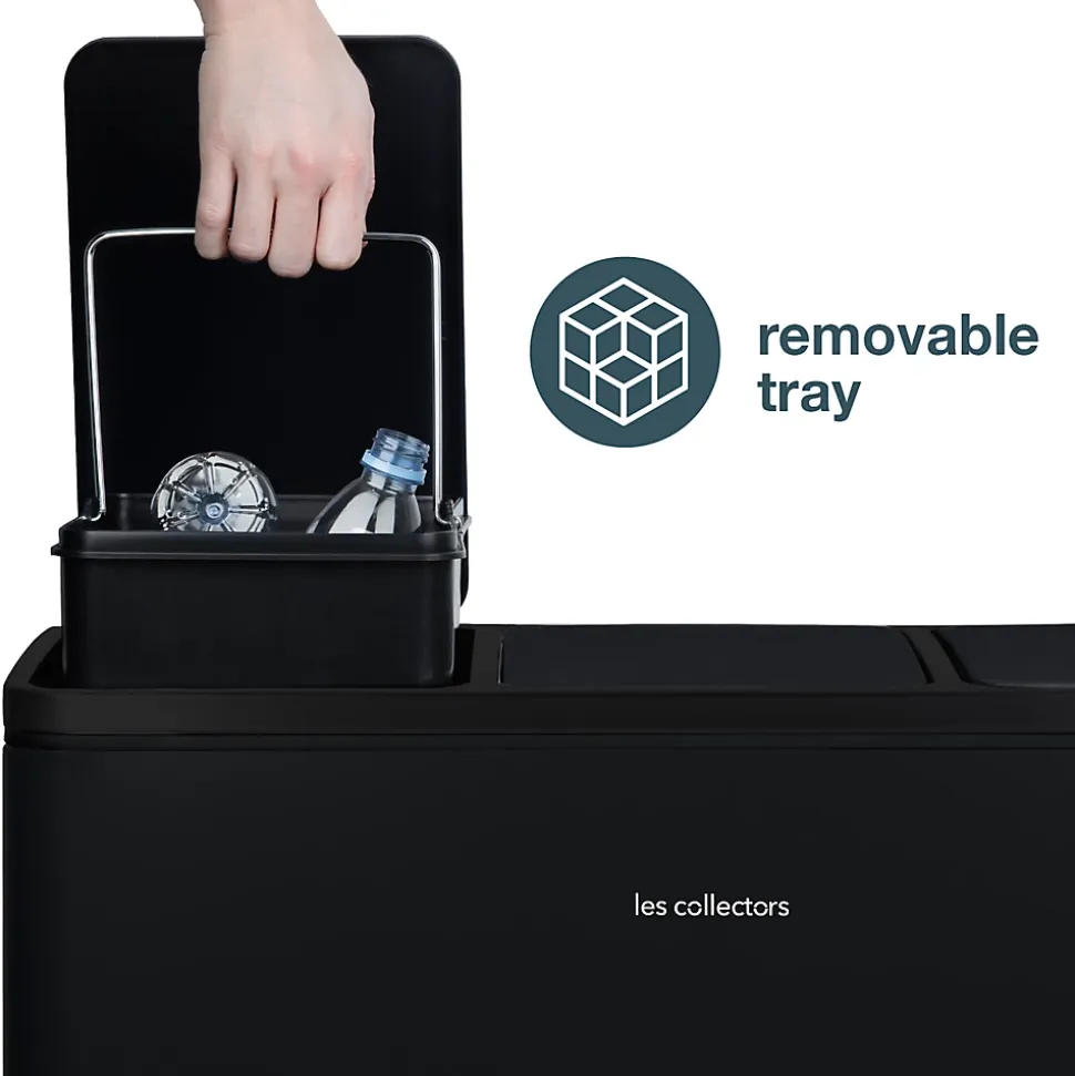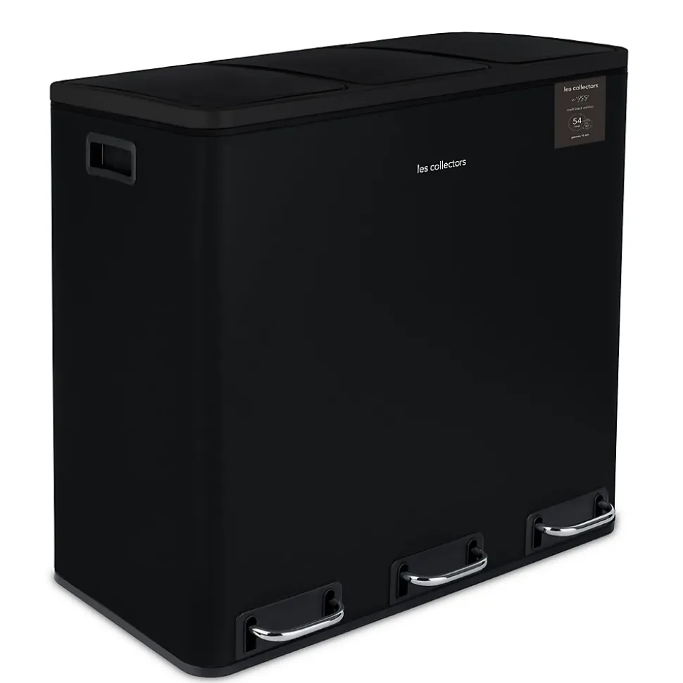 DESCRIPTION :Cette poubelle de 54L vous facilite le tri sélectif au quotidien. Organisez vous-même la gestion des déchets selon vos habitudes de consommation.Grâce à ses 3 compartiments avec couvercles séparés, vous n’ouvrez qu’un seul bac à la fois et évitez ainsi la propagation d’odeurs désagréables pouvant provenir d’autres bacs.La fermeture des couvercles est lente et silencieuse pour un confort et une discrétion totale au quotidien.Ses 3 pédales en métal et son corps en acier inoxydable sont gages de robustesse et de qualité.Les bacs de chaque compartiments sont amovibles et possèdent une anse qui facilitent le changement de sac ainsi que son entretien.Design et écologique, elle s’intègre parfaitement dans une cuisine ou des bureaux.CARACTÉRISTIQUES :Poubelle de tri à pédale 3 compartimentsCapacité : 54 L (3 x 18 L)Forme : rectangulaireCorps en acier inoxydableFinition anti-traces de doigtsFermeture du couvercle silencieuse3 bacs intérieurs amoviblesPédale en acierPieds antidérapantsDimensions : 61,5 (L) x 34,4 (P) x 56 (H) cm