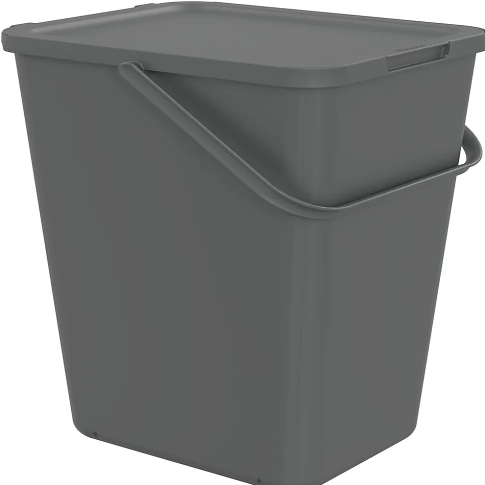 Conteneur d’intérieur pour tri sélectif de couleur gris et d’une capacité de 30 L. Le couvercle s’ouvre entièrement pour vider le bac. Equipé d’une anse pour faciliter le transport.