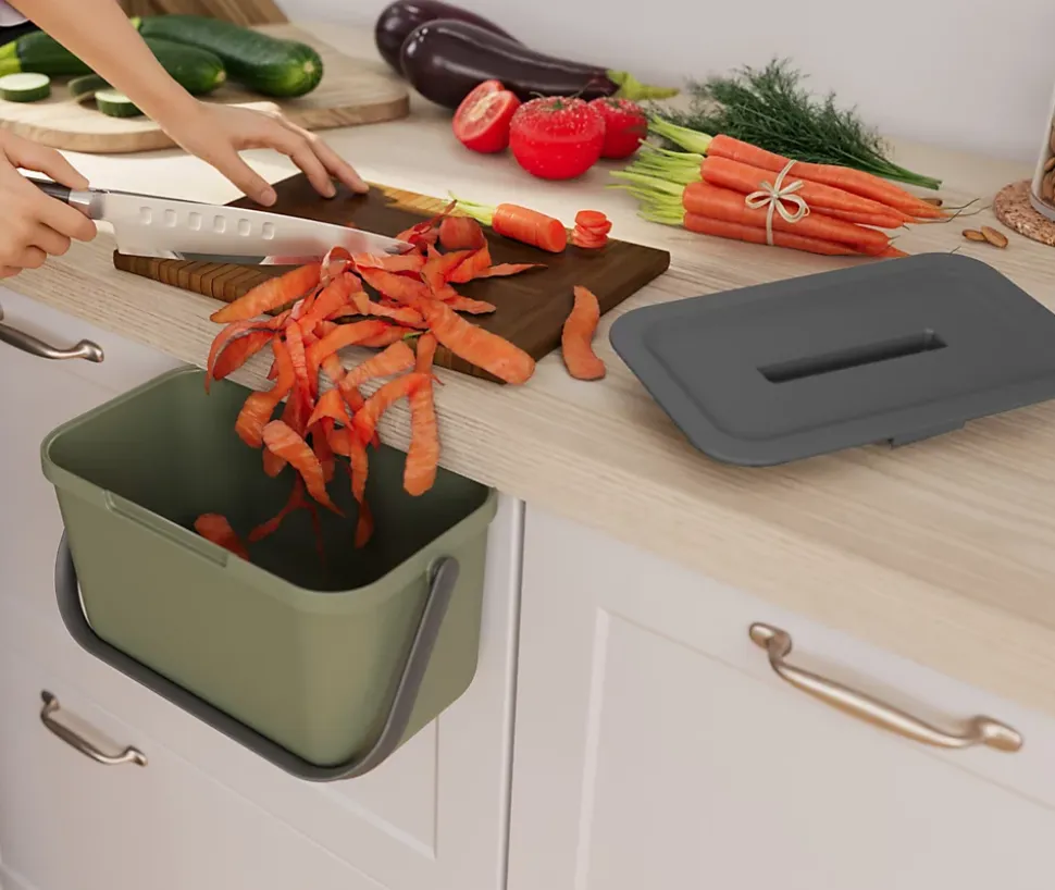 Conteneur d’intérieur pour compost de couleur gris et d’une capacité de 4CL. Le couvercle peut s’enlever entièrement pour vider le bac. Le couvercle peut se fixer à l’arrière du bac. Possède un système d’accroche intégré pour le suspendre aux portes. Equipé d’une anse pour faciliter le transport. Superposable aux autres produits de la gamme.