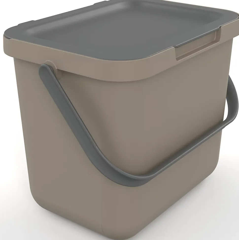 Conteneur d’intérieur pour compost de couleur taupe et d’une capacité de 6 L. Le couvercle s’ouvre entièrement pour vider le bac. Equipé d’une anse pour faciliter le transport. Superposable aux autres produits de la gamme.