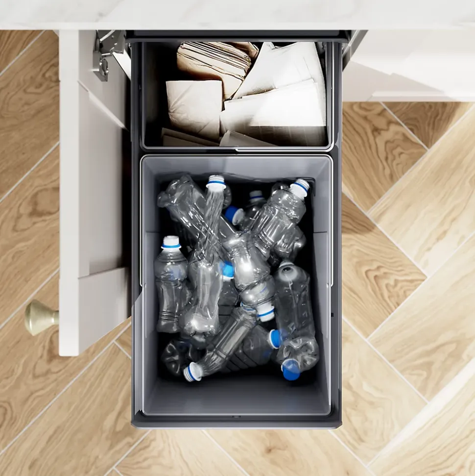 - Cette poubelle à glissière solide et de haute qualité est fixée à la base de l’unité pour plus de flexibilité et dissimule les déchets derrière votre meuble de cuisine