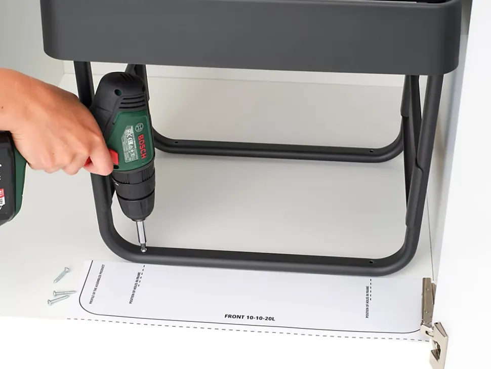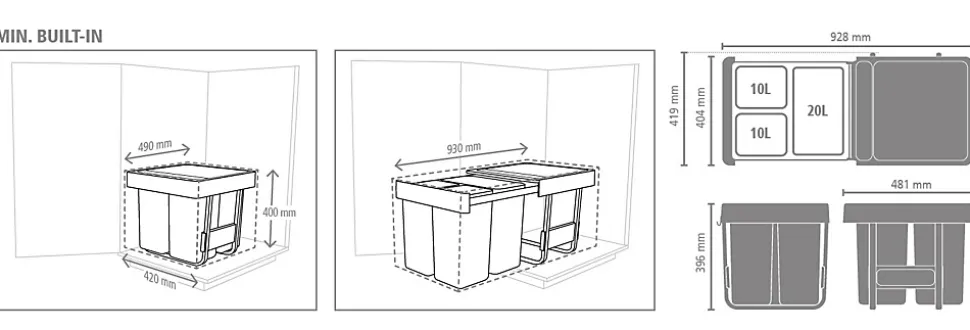 - Accès facile : rails télescopiques et poignée pour enlever complètement les poubelles.