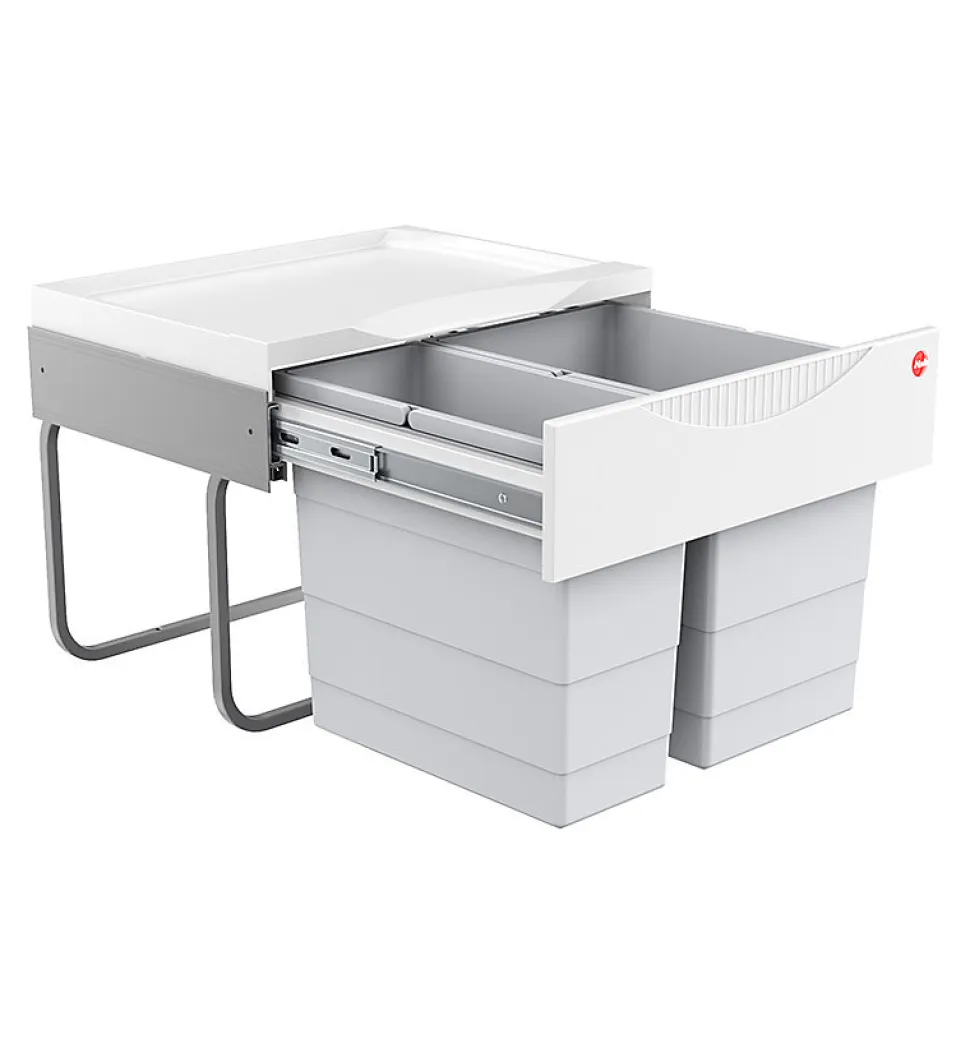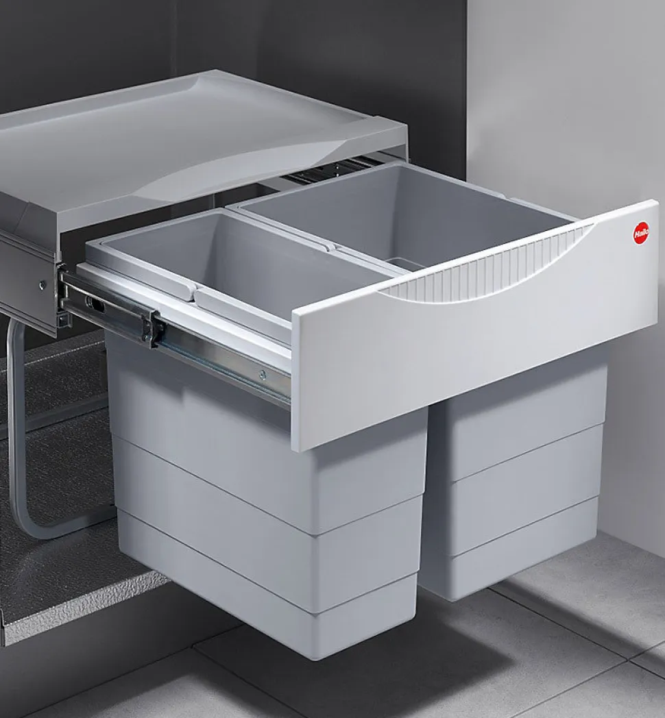 Poubelle de cuisine encastrable Hailo Raumspar Tandem S – Grise – 2 bacs amovibles de 18 et 12L – Ouverture de la poubelle à la main – Conçue pour meubles à porte battante d&