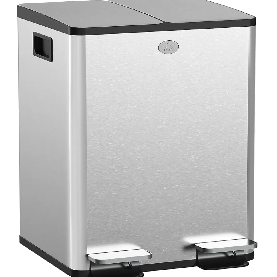 Avec son design moderne, cette poubelle manuelle est parfaite pour équiper votre cuisine. Munie de deux couvercles à fermeture silencieuse et douce, ainsi qu’une option de maintien ouvert, cette poubelle à pédale facilite son usage au quotidien. Grâce à sa grande capacité (20L au total) et à ses 2 compartiments, elle est parfaite pour trier vos déchets et pouvoir les recycler correctement en toute simplicité.Caractéristiques :- Poubelle de cuisine en acier inox. brossé idéale pour ajouter une touche de modernité supplémentaire à votre intérieur- Deux couvercles à fermeture silencieuse et douce, ainsi qu’une option de maintien ouvert- 2 compartiments différents pour séparer efficacement vos déchets- Facile à nettoyer grâce à son revêtement anti-empreintes digitales et son couvercle amovible- Capacité totale de 40L répartie en 2 bacs de 20L chacunSpécifications :- Couleurs : acier inox. brossé, gris- Matériaux principaux : acier inoxydable 410, plastique PP- Dim. totales : 45,8L x 36l x 51,6H cm- Capacité totale déchets : 40L- Volume : 2 x 20 L- Livraison en un colis- Réf. : 851-033V01SR