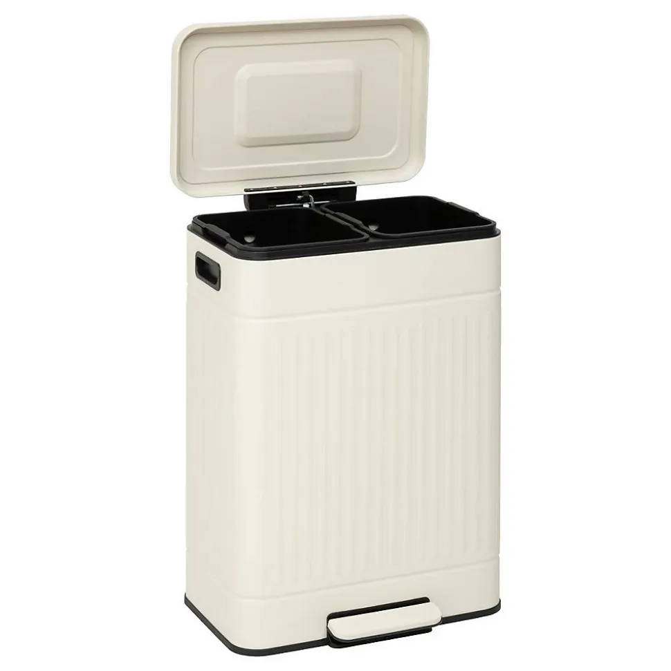 Optimisez le tri au quotidien grâce à cette poubelle double compartiment d’une capacité totale de 60 litres (2 × 30 L). Conçue pour simplifier le geste du tri, elle dispose de deux bacs séparés, facilement accessibles et totalement indépendants. Son ouverture à pédale offre une utilisation hygiénique tandis que sa fermeture Soft Close garantit un confort acoustique appréciable. Grâce à son design moderne et ses poignées latérales, elle s’intègre parfaitement dans toutes les cuisines contemporaines. Double compartiment : 2 × 30 L pour trier facilement déchets recyclables et non recyclables. Soft Close : fermeture silencieuse du couvercle pour un confort optimal. Ouverture à pédale : hygiénique, sans contact manuel. Bacs intérieurs amovibles : facilitent le nettoyage et le changement des sacs. Couvercle à maintien ouvert : se bloque à 90° pour les manipulations prolongées. Poignées latérales intégrées : transport simple et sécurisé. Design moderne : coloris noir élégant et silhouette adaptée aux cuisines tendance.Caractéristiques techniques : Capacité totale : 60 L (2 × 30 L) Dimensions : L. 35 × l. 27 × H. 58 cm Hauteur couvercle ouvert : 85,5 cm Matériaux : Corps : acier et polypropylène Couvercle : acier Bacs intérieurs : polypropylène amovible Pédale : acier inoxydable Poignées : polypropylène et acier Système d’ouverture : pédale Fermeture : Soft Close Usage : intérieur