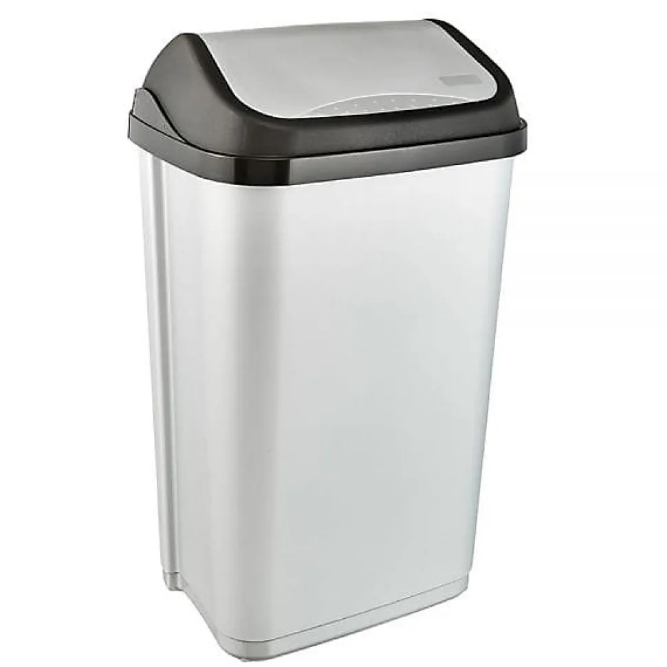Poubelle plastique à couvercle basculant 50 litres - Gris Clair