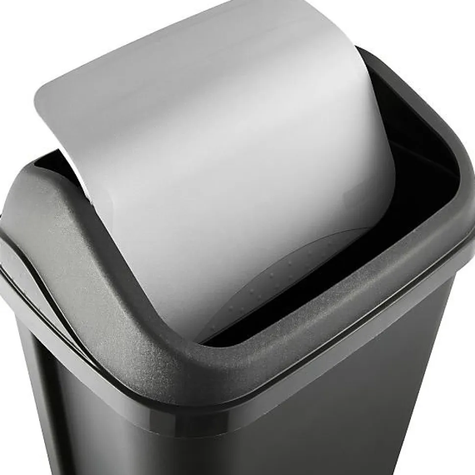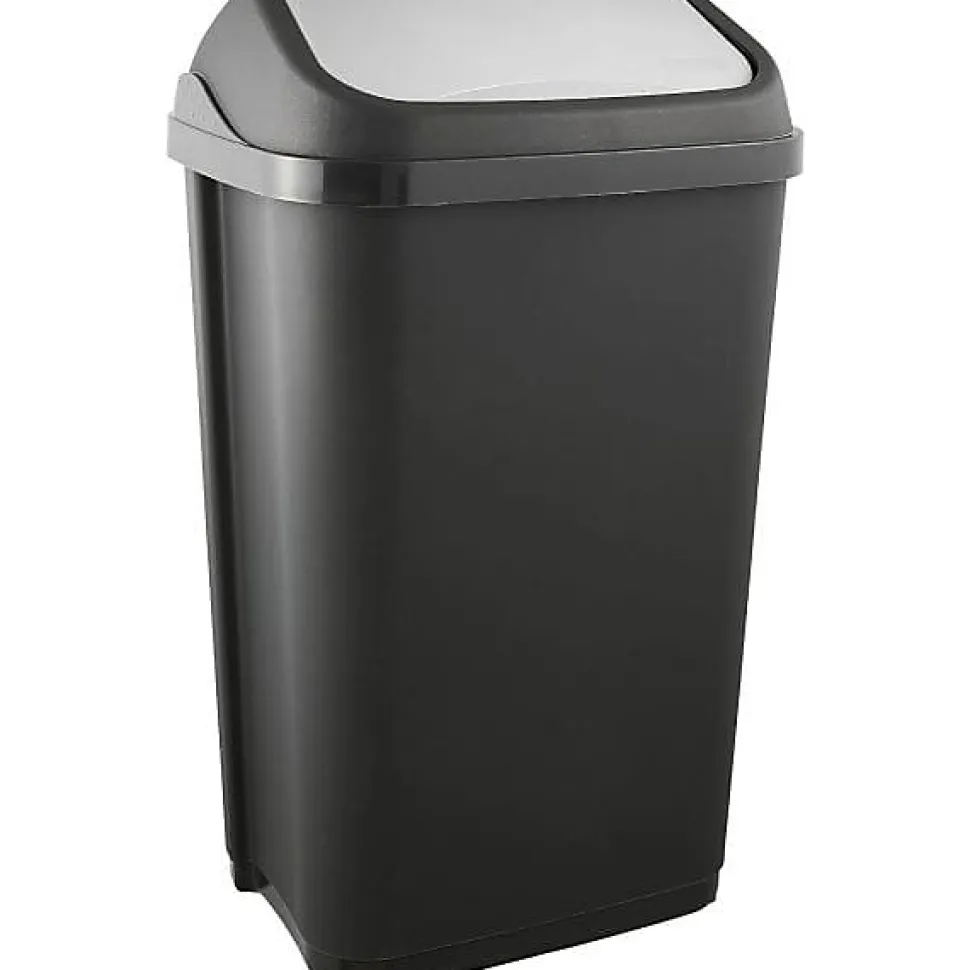 Poubelle plastique à couvercle basculant 50 litres de la gamme swantje de la marque Allemande Keeeper. Avec couvercle basculant, stable.Le couvercle amovible permet de mettre en d’enlever facilement le sac poubelle.En Polypropylène solide recyclable.Dimensions : (L)38,5 x (P)29 x (H)66 cm Style élégant avec son design bicolore.Sac poubelle conseillé : 60 litres.
