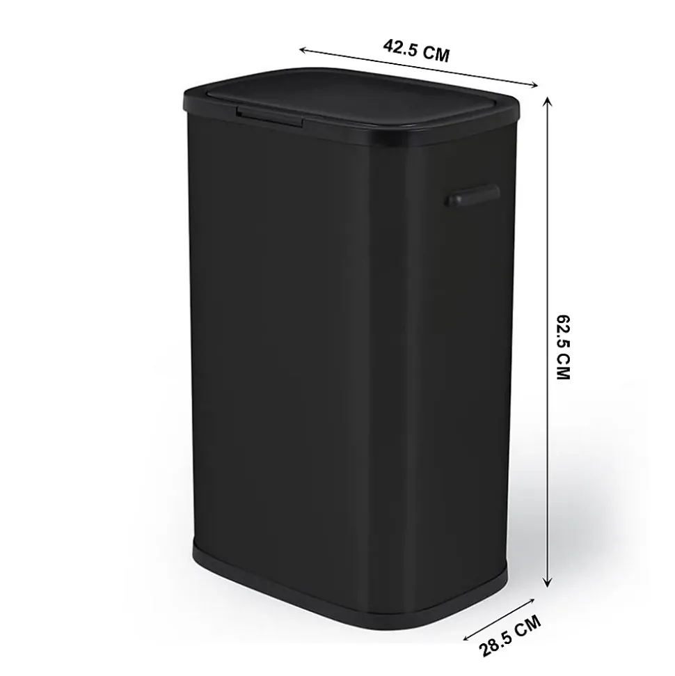 La poubelle de cuisine PORTLAND 60L de Kitchen Move associe design moderne et simplicité d’utilisation. Son système d’ouverture par simple pression permet de jeter vos déchets sans effort, même les mains prises. Sa grande capacité de 60 litres en fait un choix idéal pour les familles ou les passionnés de cuisine. Son corps en acier inoxydable noir lui confère un style sobre et élégant, facile à intégrer dans tout type d’intérieur. Le couvercle à pression aide à contenir les odeurs et à garder une cuisine propre et agréable. Les poignées latérales intégrées facilitent le déplacement et le changement du sac. Grâce à sa base stable et antidérapante, elle reste bien en place au quotidien. Facile à entretenir, elle allie hygiène, confort et esthétisme. Dimensions : 42 × 28,5 × 62,5 cm.