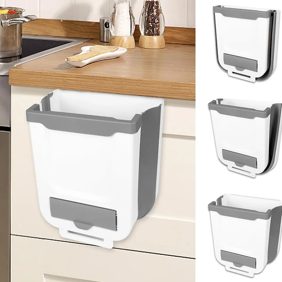 Robuste et durable : notre poubelle pliable a été entièrement repensée et fabriquée en plastique et silicone de meilleure qualité, elle est plus épaisse et plus durable qu’auparavant, et elle est inodore, vous pouvez donc être sûr de l’utiliser.Suspendu et pliable : la poubelle de camping adopte tout d’abord un design en forme de U, plus pratique à accrocher. Deuxièmement, la poubelle de cuisine adopte une conception pliante créative, qui peut économiser plus d’espace, garder la pièce propre et bien rangée, et elle est facile à transporter, également très adaptée à une utilisation en extérieur.Taille appropriée : les couleurs blanches et grises peuvent être facilement assorties à différents types de scènes. Poubelle pliable d’une capacité de 7 litres.Taille : 23 x 20 x 16 cm / 9,06 x 7,87 x 6,30 pouces, la poubelle a suffisamment d’espace pour les déchets quotidiens dans la cuisine, le bureau ou la salle de bain.Sac poubelle escamotable : la porte de la poubelle est équipée d’un sac poubelle facile à emporter avec vous. La base est également équipée d’une poignée pour contenir les torchons de cuisine et autres petits objets, très pratique. Vous n’avez plus besoin de vous pencher pour ranger vos déchets et vous n’avez plus à craindre qu’ils tombent sur le sol.Polyvalent : vous pouvez accrocher cette poubelle dans la cuisine ou les toilettes pour ne pas avoir à vous pencher et empêcher les animaux domestiques ou les bébés d’accéder à la poubelle et de jouer avec comme un jouet. Vous pouvez également l’accrocher au mur à côté de votre machine à laver pour le linge sale ou le détergent, et vous pouvez également l’utiliser dans votre voiture, au camping ou au bureau, etc.
